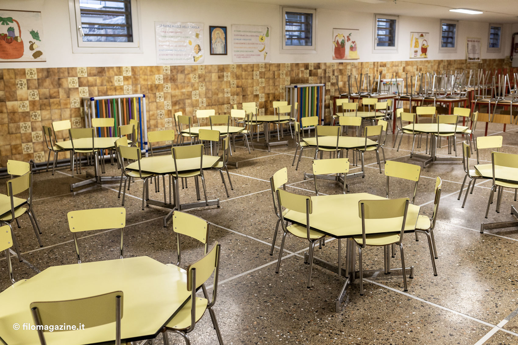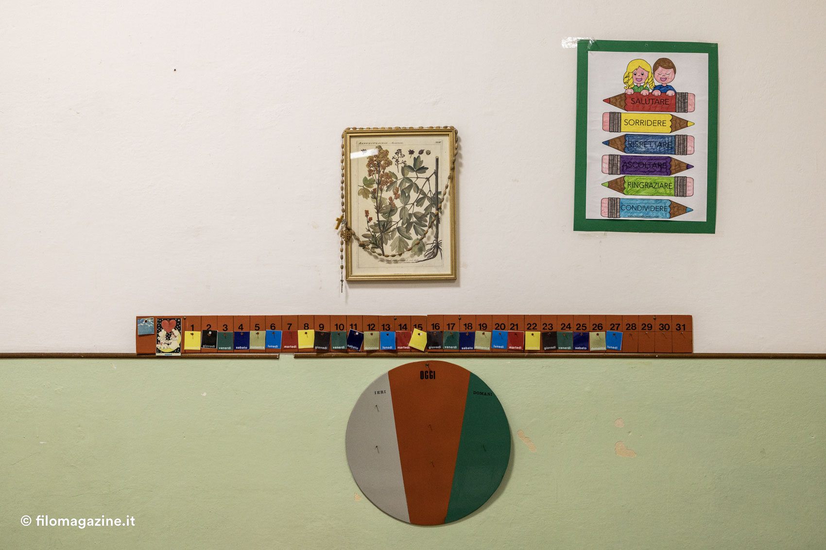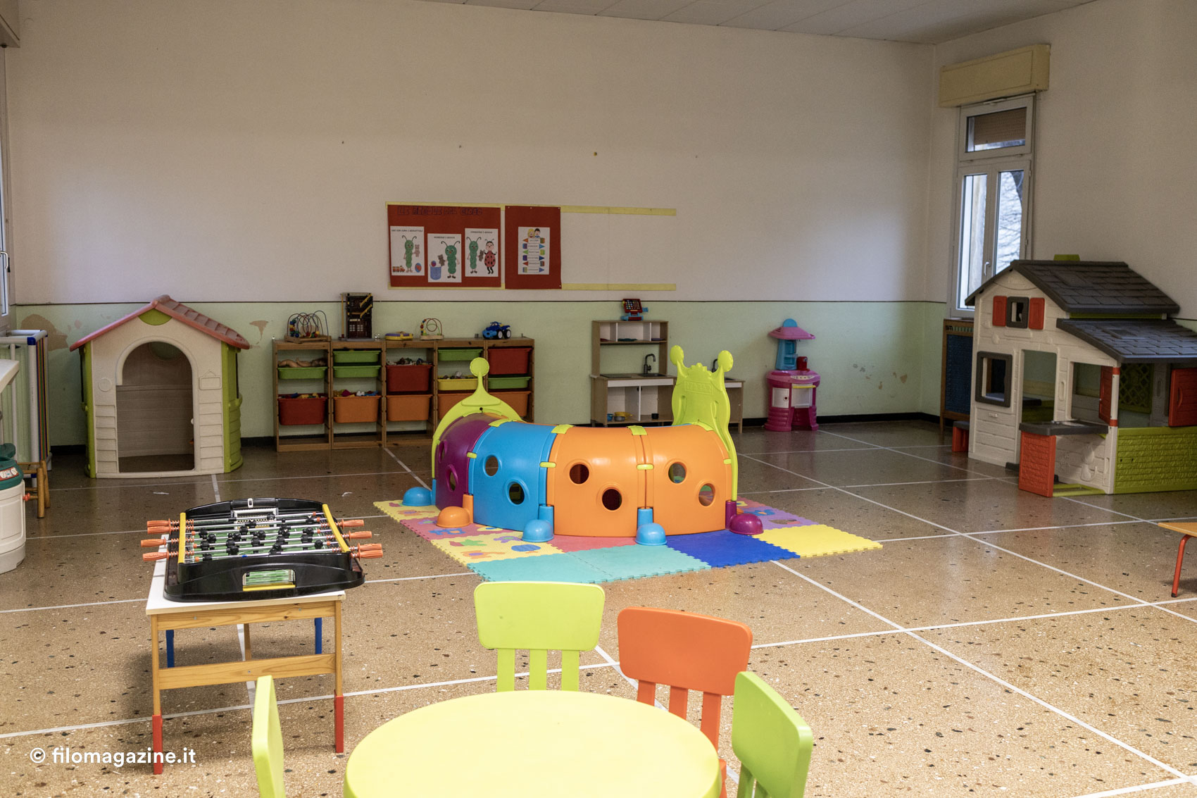La scuola nasce infatti nel 1956, su sollecitazione del parrocco Don Adriano Benvenuti, con l’apporto fondamentale delle Suore Domenicane, che per diversi decenni hanno lavorato in questa struttura (dopo la loro partenza poco più di dieci anni fa, sono arrivate in supporto tre Suore sempre dell’ordine Domenicano di origine filippina, che lavorano e vivono all’interno della scuola) e il prodotto finale è qualcosa di simile eppure diverso dalle altre scuole dell’infanzia. Spazi ampi, arredi a portata di bambino, le classi allineate e divise tra loro da porte sempre aperte al centro della stanza, in modo che tutte le insegnanti si possano sempre vedere e comunicare senza allontanarsi dai bambini, creando il contesto per un ambiente collaborativo e che lavora in gruppi, ma che vuole assomigliare ad una comunità.