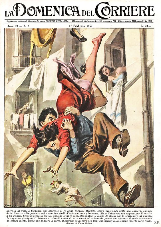Finita la guerra siamo tornati in una città piena di macerie, che per un bambino costituiva un meraviglioso campo da giochi. Ricordo che andavamo per bande e tra noi ragazzini giocavamo a ‘far la guerra’, perché nell’aria c’era ancora quel clima. Spesso si andava verso la stazione, che era un campo verde, ideale per lasciare andare la fantasia. Fu all’incirca in quel periodo che mi sono avvicinato al linguaggio del disegno grazie al fratello di mia mamma, lo zio Gabriele, che era convinto io fossi portato. Probabilmente la dislessia che mi ha accompagnato fin dalle elementari, ha influito sulla necessità di usare un altro linguaggio.