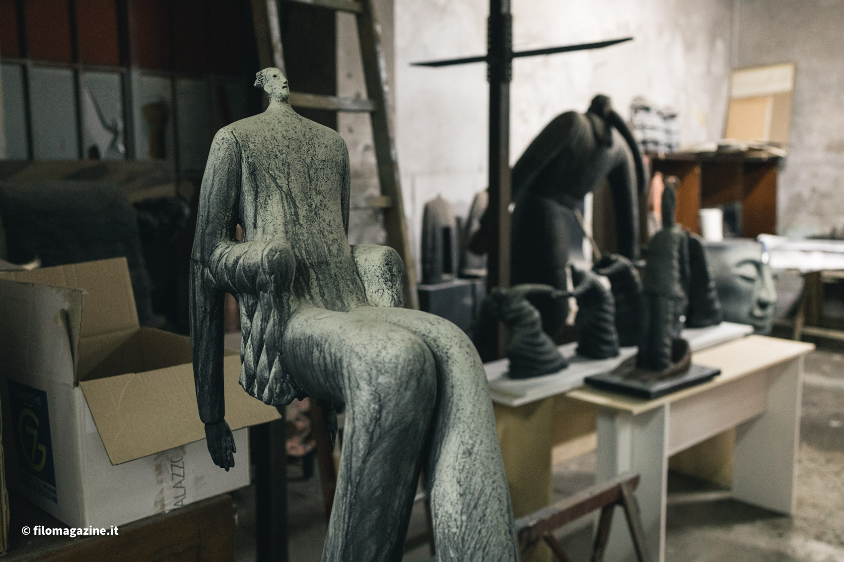Vorrei soffermarmi un attimo anche sul linguaggio della scultura. Per me è una questione di forme e volumi, per questo nel mio percorso artistico ho fatto spesso riferimento a figure greche oppure orientaleggianti. Considero che l’avvicinamento a queste due dimensioni sia legato al bisogno di rimanere fedeli alla propria identità, usandoli come riferimenti concettuali e non come rimandi a elementi concreti. La figura dell’equilibrista che spesso si ritrova nella mia poetica denota molto bene tale idea: è la sintesi del concetto di armonia per i greci, perché la bellezza nasce da un equilibrio, e dall’armonia di più fattori.