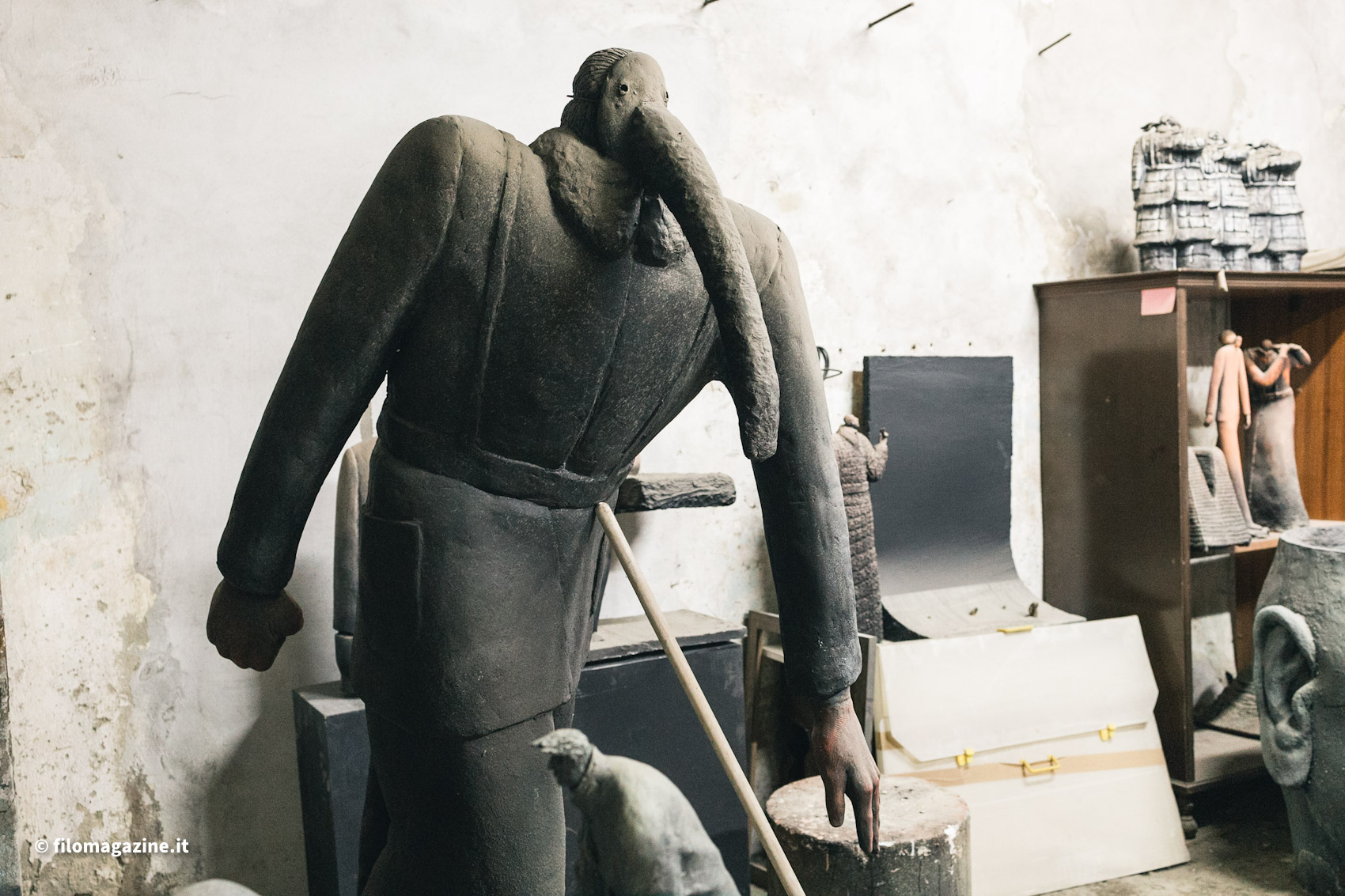 Ho iniziato a fare delle sculture in terracotta, e finivo per fare sempre queste figure antropomorfe un po’ meccaniche, un po’ mostruose… volevo fare cose drammatiche. Trovo molto emozionante lavorare la terracotta, plasmare le figure come se fossero degli esseri viventi, come se fossero figli. Ovviamente non ho mai abbandonato completamente il disegno, però da allora ho continuato principalmente con la scultura.
