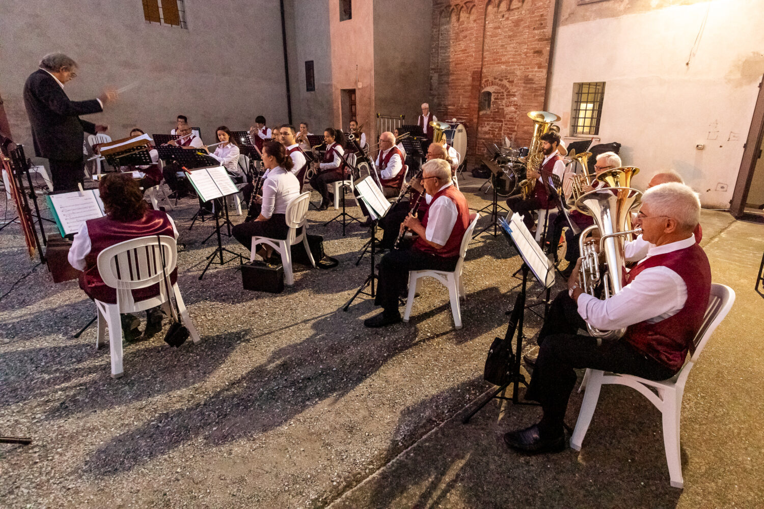 “Al momento ci siamo detti che vogliamo mantenere l’assenza totale di strumenti elettronici. Il repertorio varia molto in base al direttore: negli anni del maestro Musyuk ad esempio abbiamo affrontato anche brani della tradizione russa. Molto sta al direttore e il direttore stesso lavora molto anche sull’arrangiamento: spesso nei contesti pubblici, come le fiere e le sagre dove gli spettatori sono perlopiù passanti, si sceglie un repertorio accessibile e comprensibile come quello delle opere di Giuseppe Verdi. A questo va aggiunto il fatto che noi tutti abbiamo comunque limiti personali che impongono la riscrittura di alcune parti troppo complesse degli spartiti. In questo senso il lavoro del direttore è estremamente importante”, spiega ancora Gallerani svelando però come la banda di Cona scelga comunque di non percorrere mai le strade più facili.