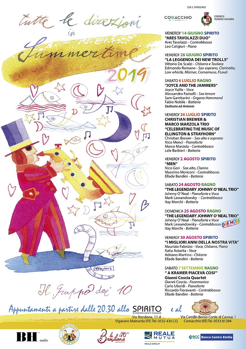 Negli anni ci siamo trovati benissimo in diversi locali, per poi trovare nuova casa allo “Spirito” di Vigarano Mainarda. Durante l’anno abbiamo diverse stagioni, da quella autunnale a quella primaverile, mentre d’estate ci spostiamo spesso verso i Lidi ferraresi. Dove diventiamo un pò l’erede della sezione Incontri Jazz Comacchio che si tenne per diverse edizioni già negli anni Novanta.”