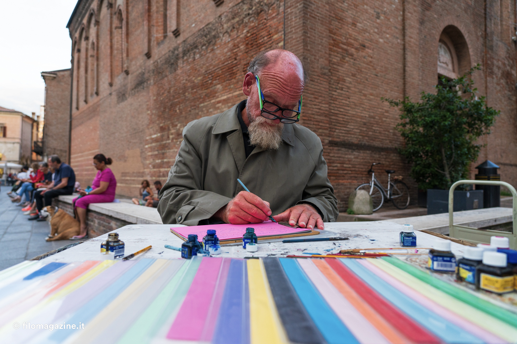 La sensazione che si respira a Ferrara è quella tipica di un grande paese, un “paesone” per così dire: la vita scorre tranquilla e la frenesia di chi vi abita non è certo quella tipica delle più grandi città. Tutto è raggiungibile a piedi o, ancora meglio, in bicicletta, simbolo identificativo di una città che si culla tra tranquillità e movimento. I giovani e in particolar modo gli studenti universitari donano vigore, colore e chiasso alla città, popolando le strade del centro storico e riempiendo i locali tra birre e cocktail fantasiosi. Proprio qui, ma come accade un po’ in ogni angolo di Ferrara, capita spesso di fare incontri piacevoli e imprevedibili, come il personaggio di Pier Francesco. Avete letto bene, IL personaggio, perché figure come la sua, oggi, è sempre più difficile trovarle.