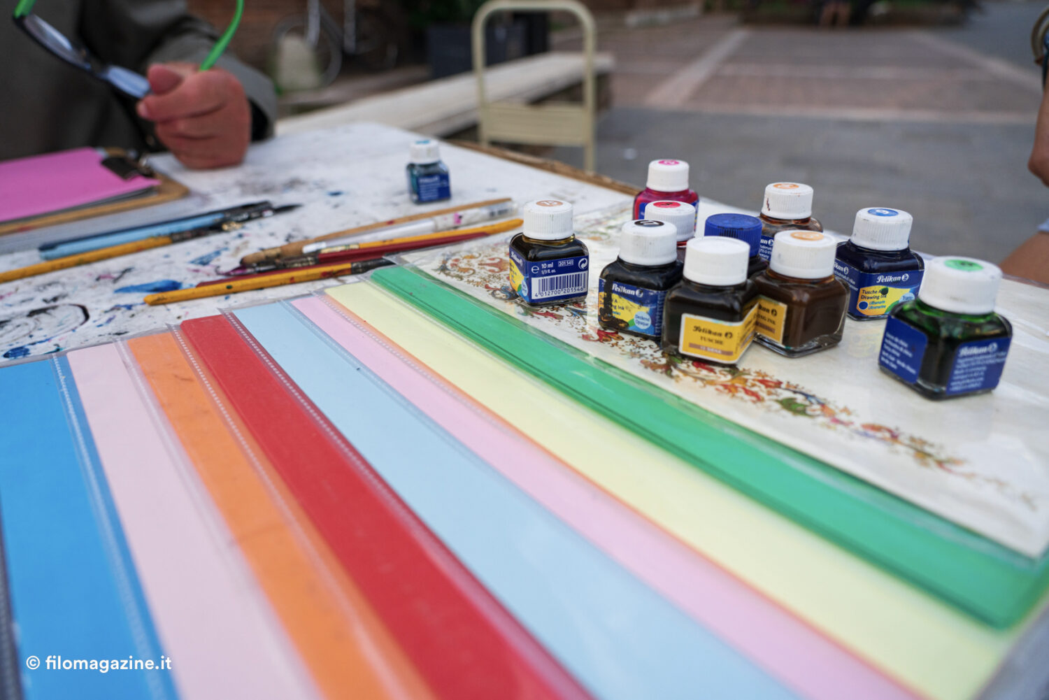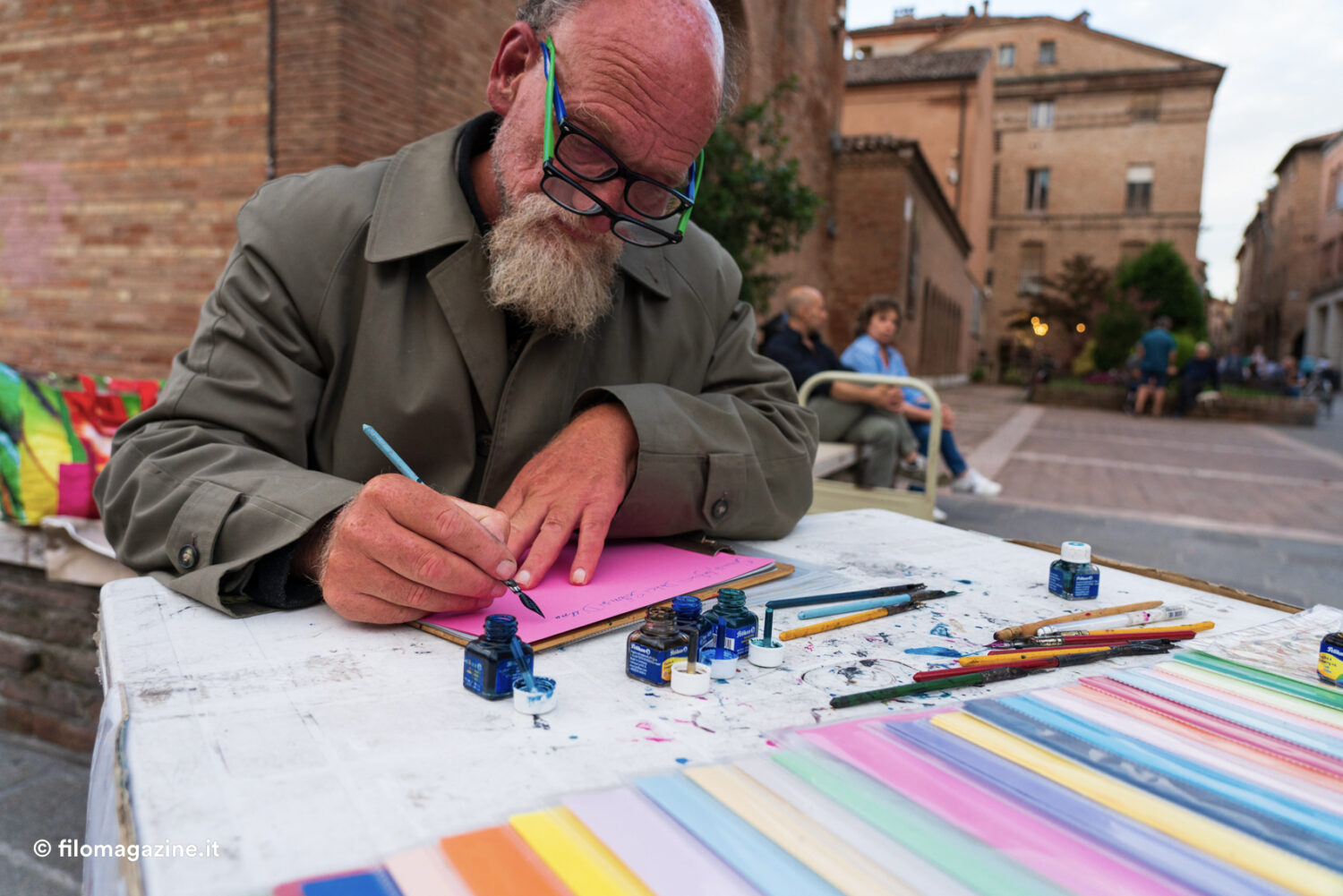 Poliglotta, conosce varie lingue: inglese, francese, un po’ di portoghese, è in grado di comporre poesie in ciascuna di esse. Profondo conoscitore della fisiognomica, scienza tanto complessa quanto discussa, Pier Francesco si basa proprio su questo per scrivere i suoi componimenti. Fa scegliere un colore tra i tanti disponibili sul suo tavolo, tra i colori a china che usa per le parole del componimento. Il resto lo fa l’espressione spontanea di chi si avvicina al suo banchetto, catturata e messa in versi. Sorprendente come il poeta sappia cogliere aspetti a volte sconosciuti anche a noi stessi, come spesso è accaduto anche a lui stesso di riscontrare. Nota piccoli e grandi dettagli, scorge caratteristiche interessanti di ognuno e sa trasformare in poesia tanto gli aspetti spigolosi quanto quelli più apprezzabili di chi gli si avvicina per farsi scrivere una poesia.