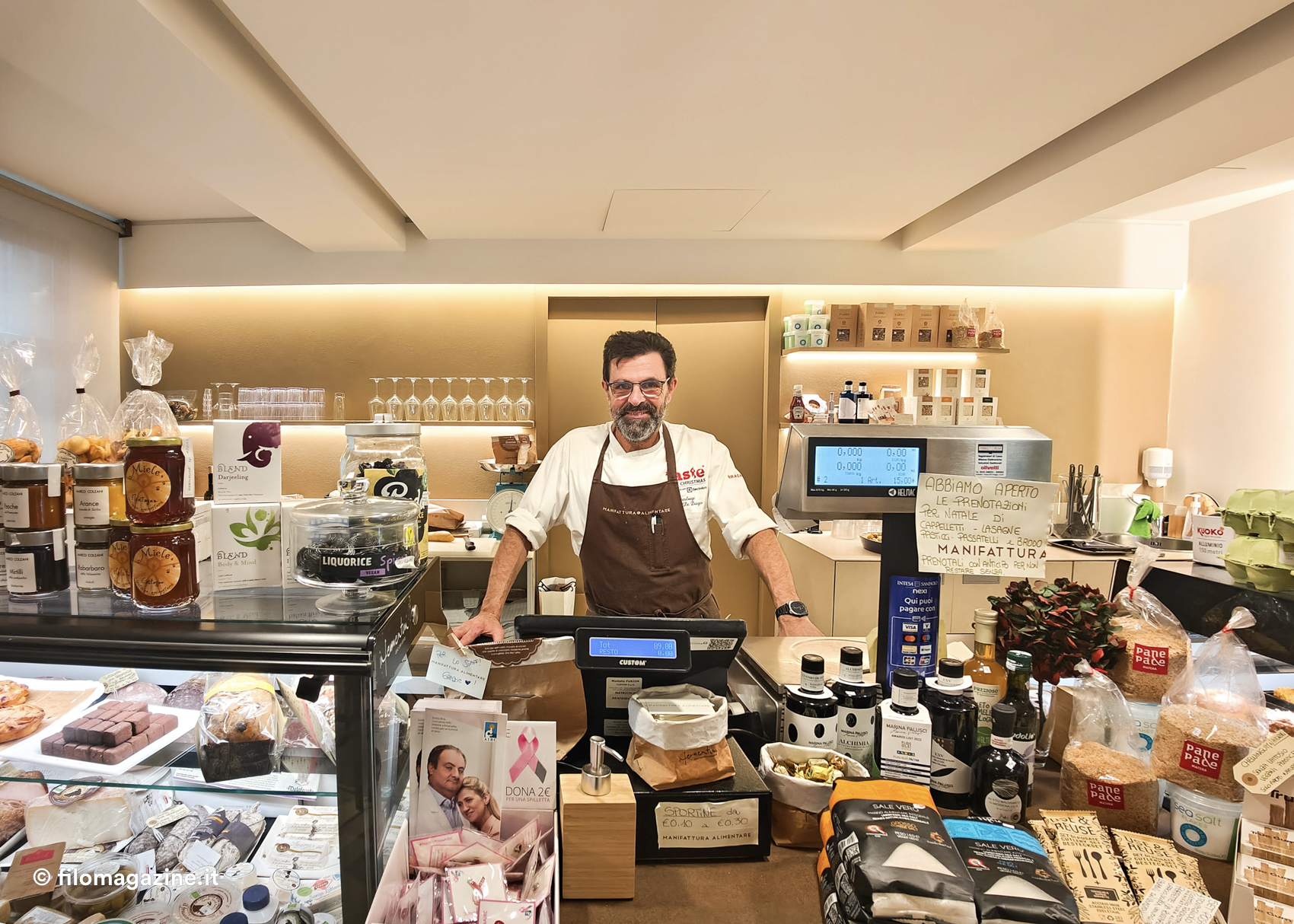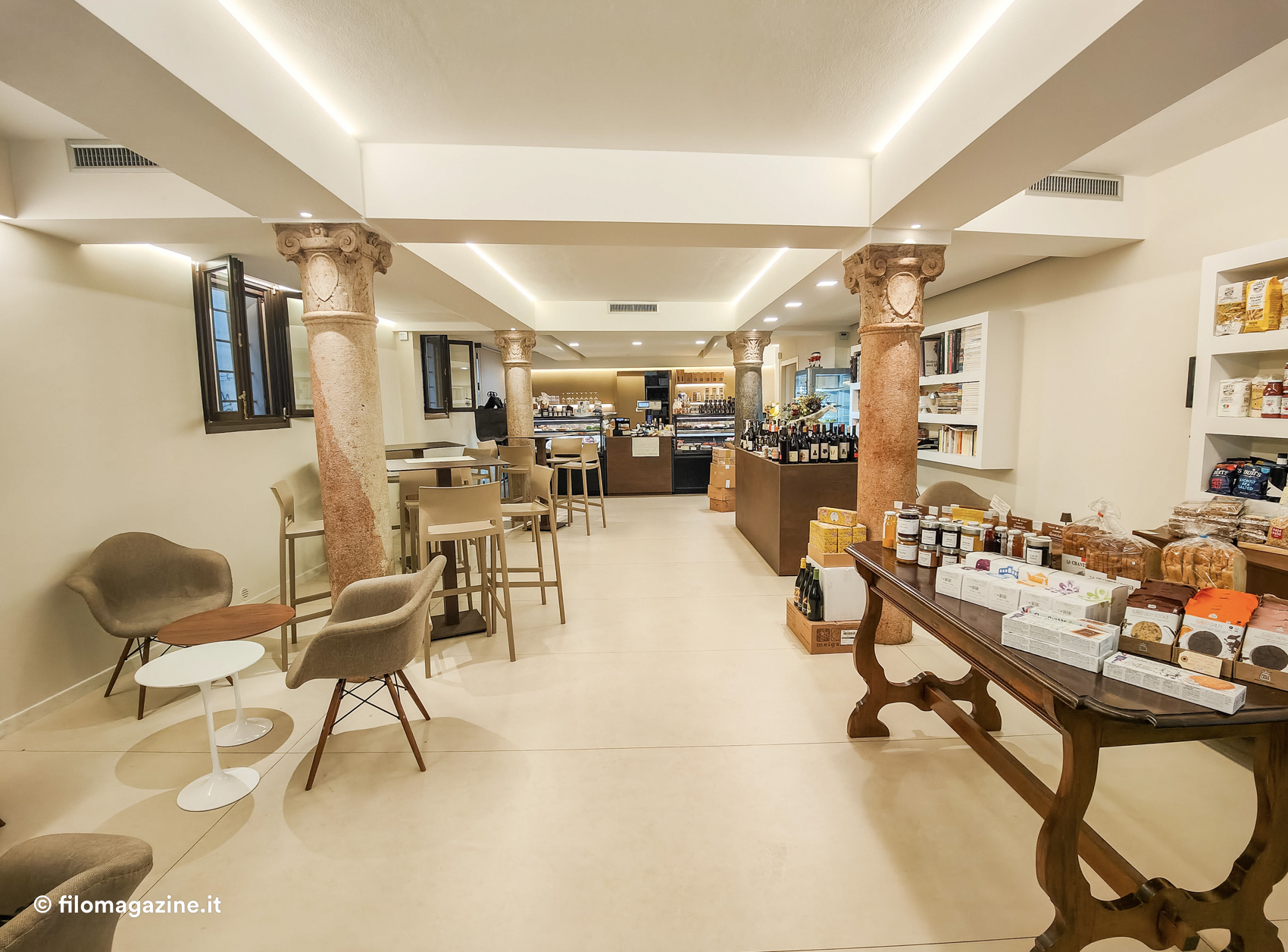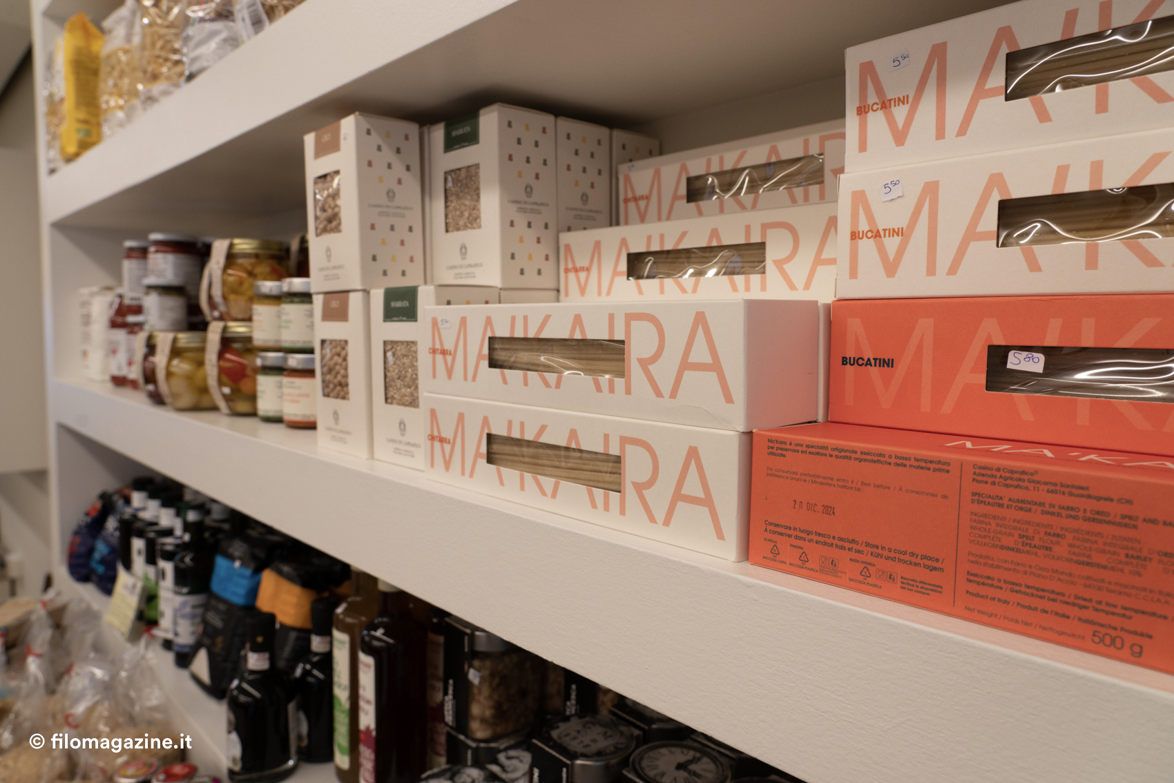 Ecco, cura è l’imperativo categorico di Piero: vi è la cura nella preparazione dei piatti, vi è la cura nell’allestimento di ogni angolo del locale, dal bancone (che delizia già al primo sguardo), al già menzionato scaffale dei libri, dal frigo con la pasta fresca, allo scaffale dei prodotti locali promossi e venduti, alla disposizione dei (pochi) tavoli presenti all’interno per la consumazione sul posto, fino alla cura nell’accoglienza del cliente, che diventa vero e proprio ospite salutato sempre con il sorriso. La cura è anche nella promozione non solo dell’artigianalità, ma anche dell’artigiano stesso: sui cartelli affissi all’interno, infatti, ogni birra o vino viene promosso rimarcando il nome di chi li ha prodotti.