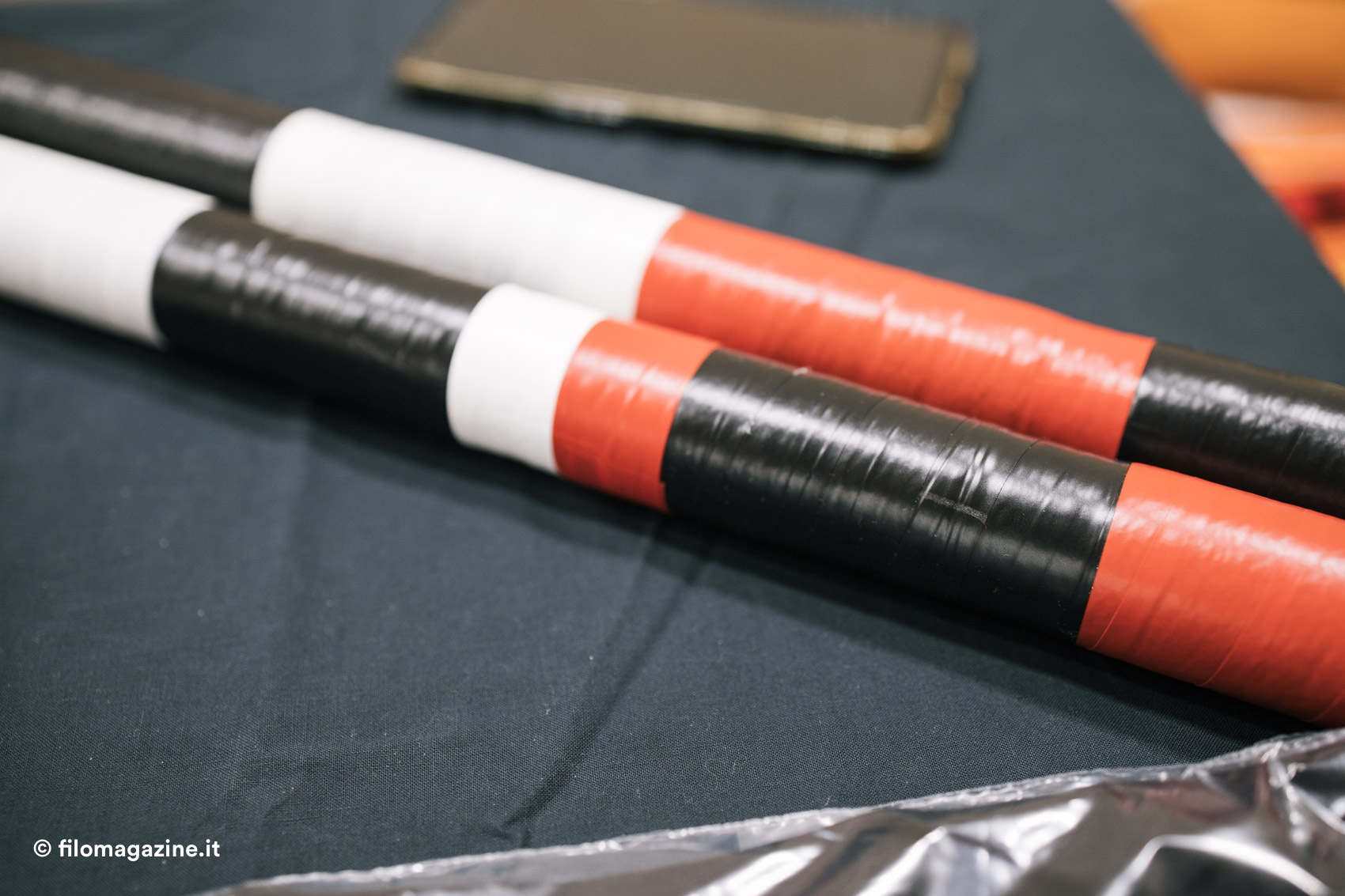 Proviamo molto rapidamente a spiegare queste regole, almeno quelle di base: due bacchi, con le estremità di colore bianco e rosso, due bacchiatori, un Uguale, che fa punto quando tocca il bacchio o l’avversario mentre le punte sono colorate in modo uguale, e un Opposto, che viceversa fa punto toccando l’avversario quando ha i colori opposti. Già non è così semplice. Ma le regole sono tantissime, complicate. É uno sport affascinante perché mentre lo state guardando e provate a capirne il funzionamento, non vi rendete conto del punteggio che avanza da quanto il tutto succede velocemente.