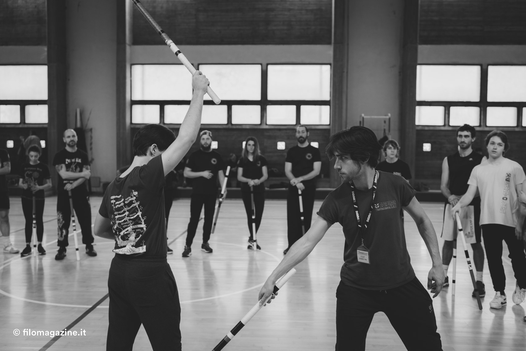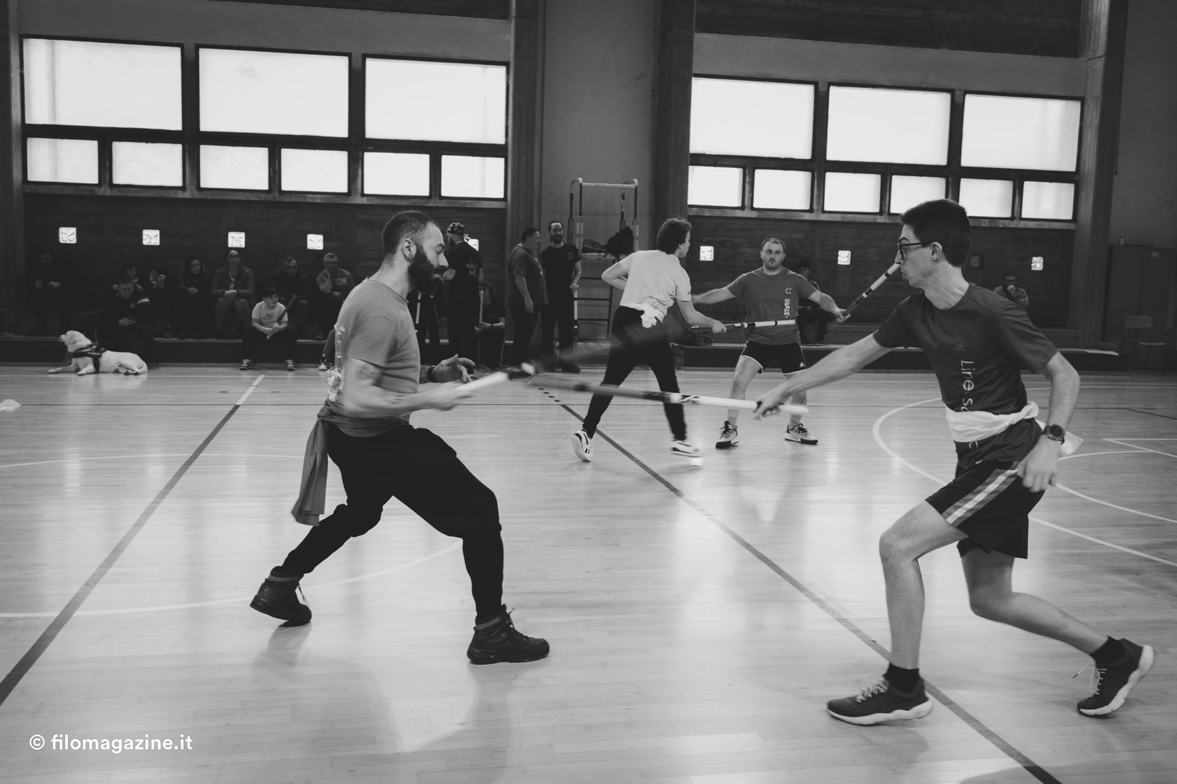 Il Bacrama è insegnato al momento in un unico corso a Ferrara, ma ciò non vuol dire che sia l’unica città in cui si pratica. Partendo dal presupposto che tante scuole di scherma lo praticano in quanto ritenuto propedeutico alla scherma, alla Coppa erano presenti tante realtà da tutta Italia. Bologna, Firenze, Modena. E poi le scuole e gli schermidori de i Béc del Ruc (Brescia), le Lame del Conte (Padova) e i Tertium Modo (Conegliano). Edoardo, uno dei soci di Ferrara, racconta: “l’associazione ha avuto modo finora di tenere il corso solo a Ferrara, ma avendo ragazzi attivi puntiamo ad espanderci anche in altre città e altre regioni. Non è immediato perché c’è da rispettare l’albero, il principio dei maestri, la lunga trafila di studio teorico e pratico per poter diventare maestri e poter praticare e aprire le proprie palestre, ma c’è grande risposta”. Proprio questo legame con la scherma ha regalato a Bacrama e alla sua associazione un riconoscimento di grande valore, come ci dicono Mattia e Edoardo “siamo presenti nell’Agorà della scherma, il museo interamente dedicato di Busto Arsizio, come ultima innovazione della scherma”. La Coppa d’Inverno 2024 è stato un successo con più di venti partecipanti, iscrizioni e una giornata intera all’insegna del sano combattimento, senza violenza, come recita il regolamento. L’associazione Uastamasta è ripartita e i bacchi sono tornati a roteare in un ambiente in cui, da profano, si respirano il rispetto e la condivisione di una passione comune.