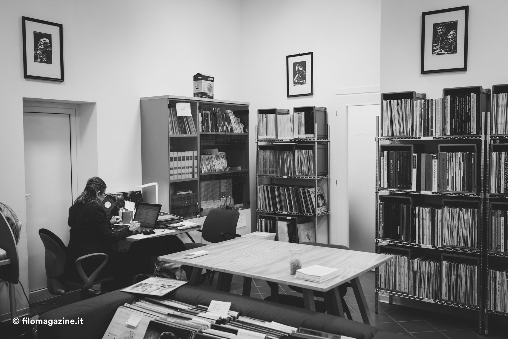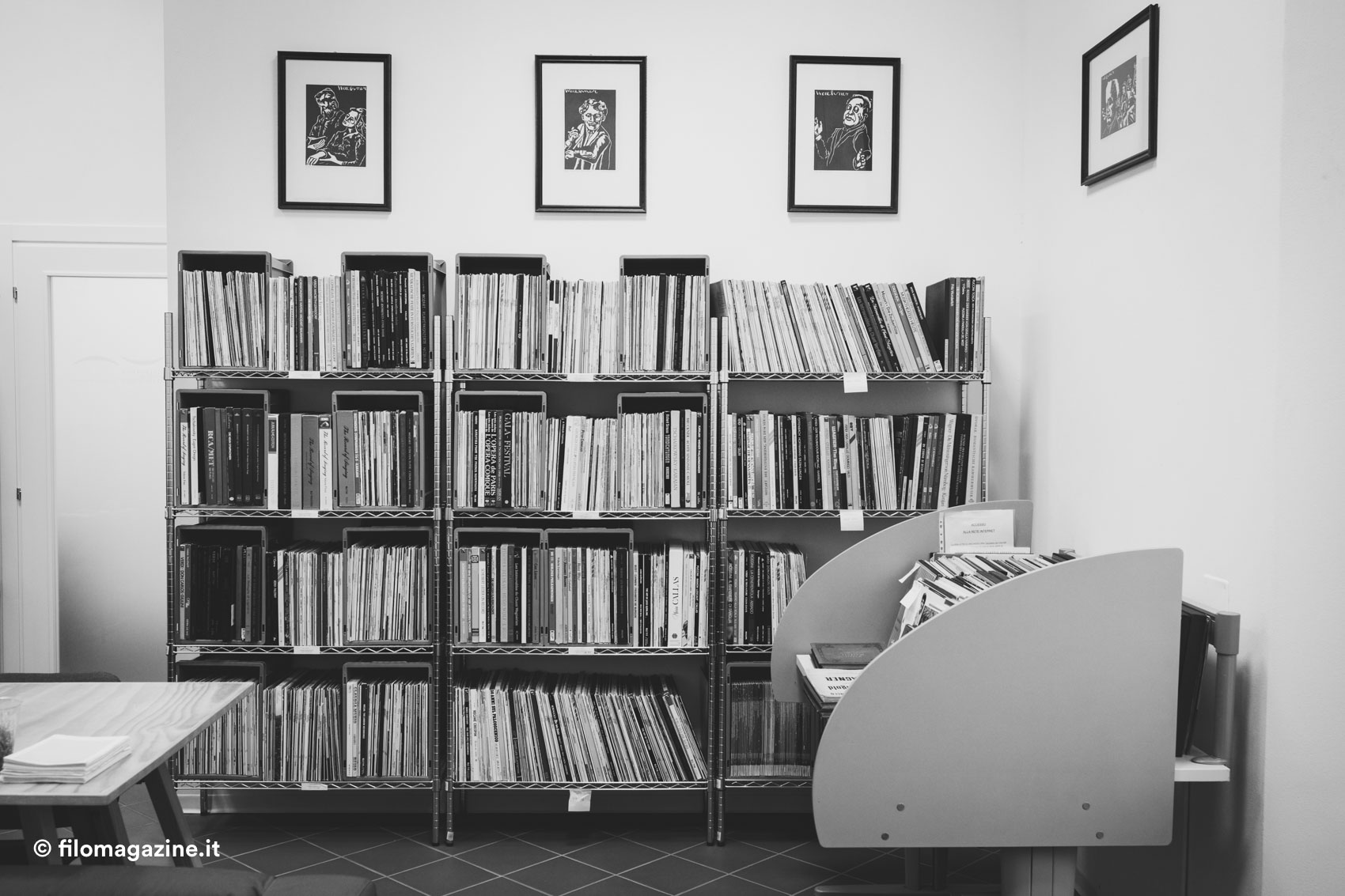 Beh, le donazioni hanno una voce in capitolo importante all’interno del patrimonio documentale, ci lasciano traccia di storie particolari. Costituiscono un valore aggiunto speciale… guardate: questa stanza che ora vedete affollata di libri, dischi e tanto altro, prima non era che un magazzino!