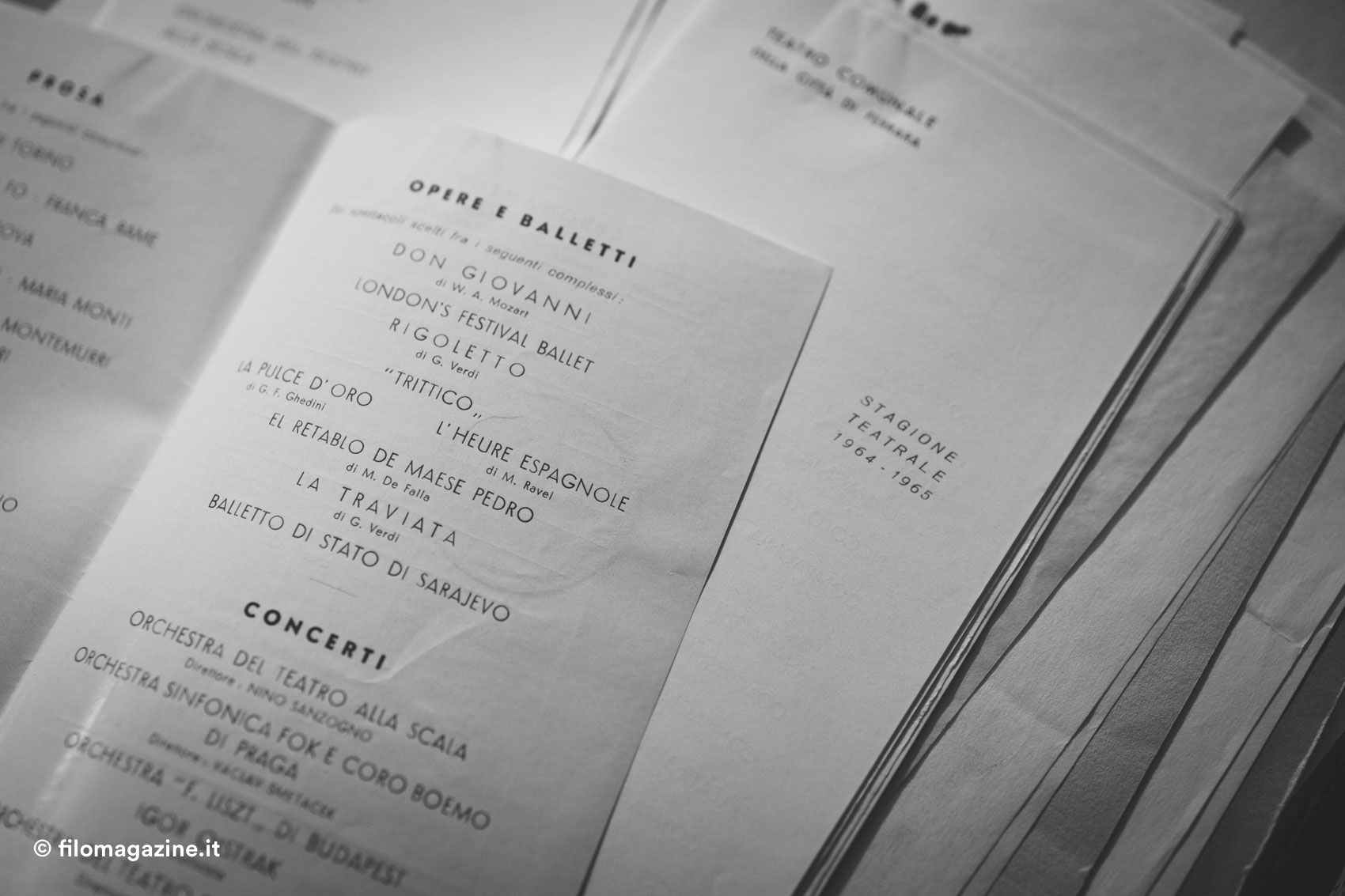 All’interno del materiale eterogeneo però, è la fotografia quella che ha sicuramente un carattere multiforme: ritratti, foto d’uso, alcune segnate o scritte a pennarello nel retro per l’adattamento alla pubblicazione a stampa, e poi prove, laboratori, presentazioni al ridotto.