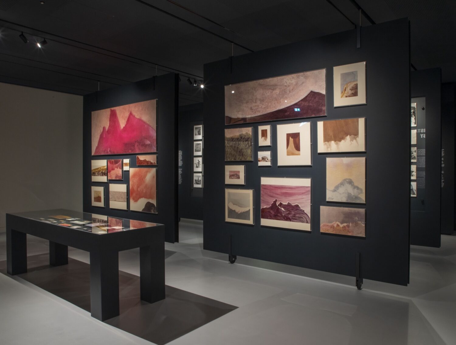 All’interno c’è dunque un po’ di quel Museo degli anni Novanta con le Montagne Incantate, enormi e meravigliosi quadri realizzati negli anni ’70 che alcuni ferraresi ricorderanno ancora, frutto dell’estro pittorico del regista, oggi in parte raccolte e abbinate cromaticamente a creare suggestioni contemporanee e sfondi rarefatti che sembrano perfettamente fare coppia con il suo cinema.