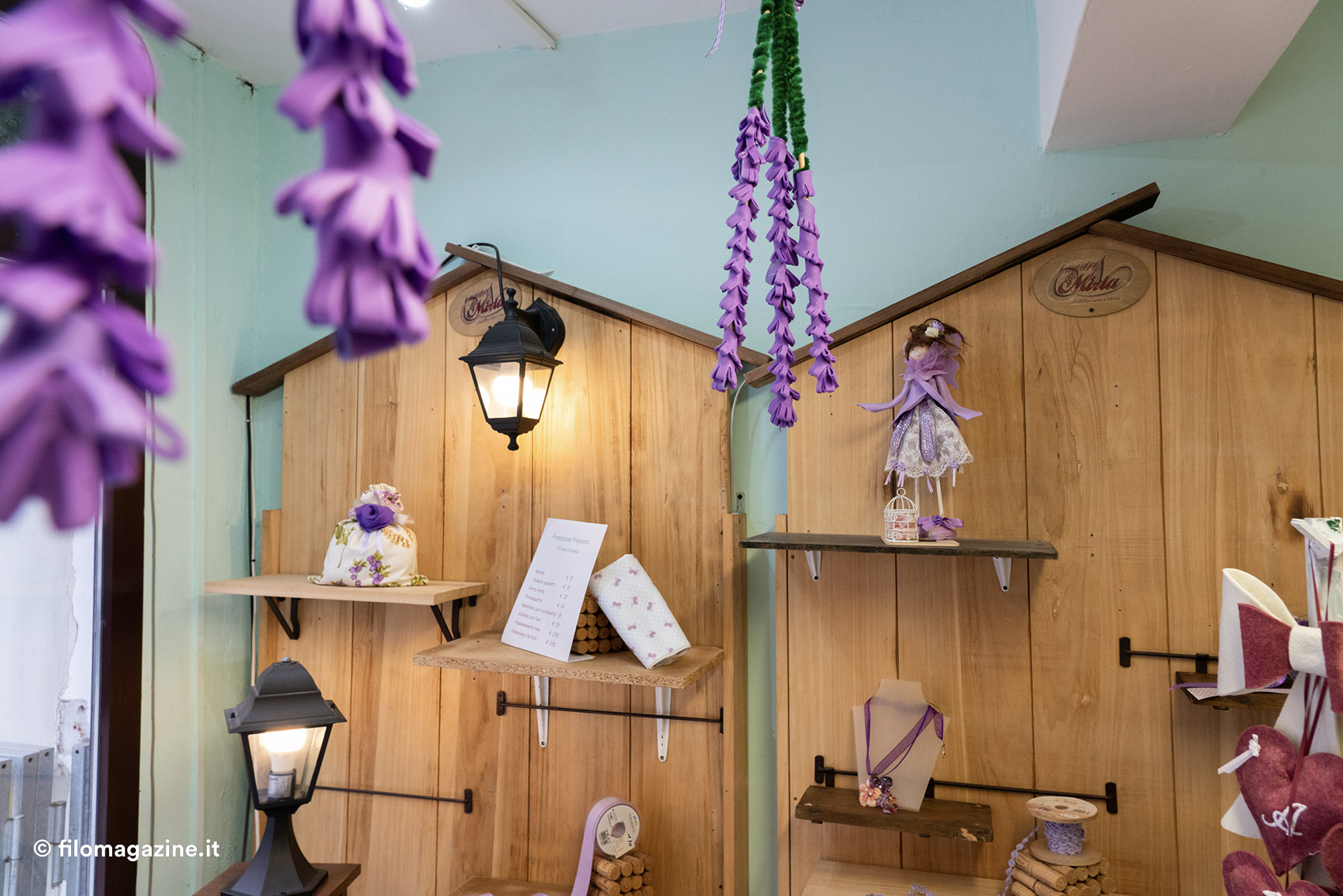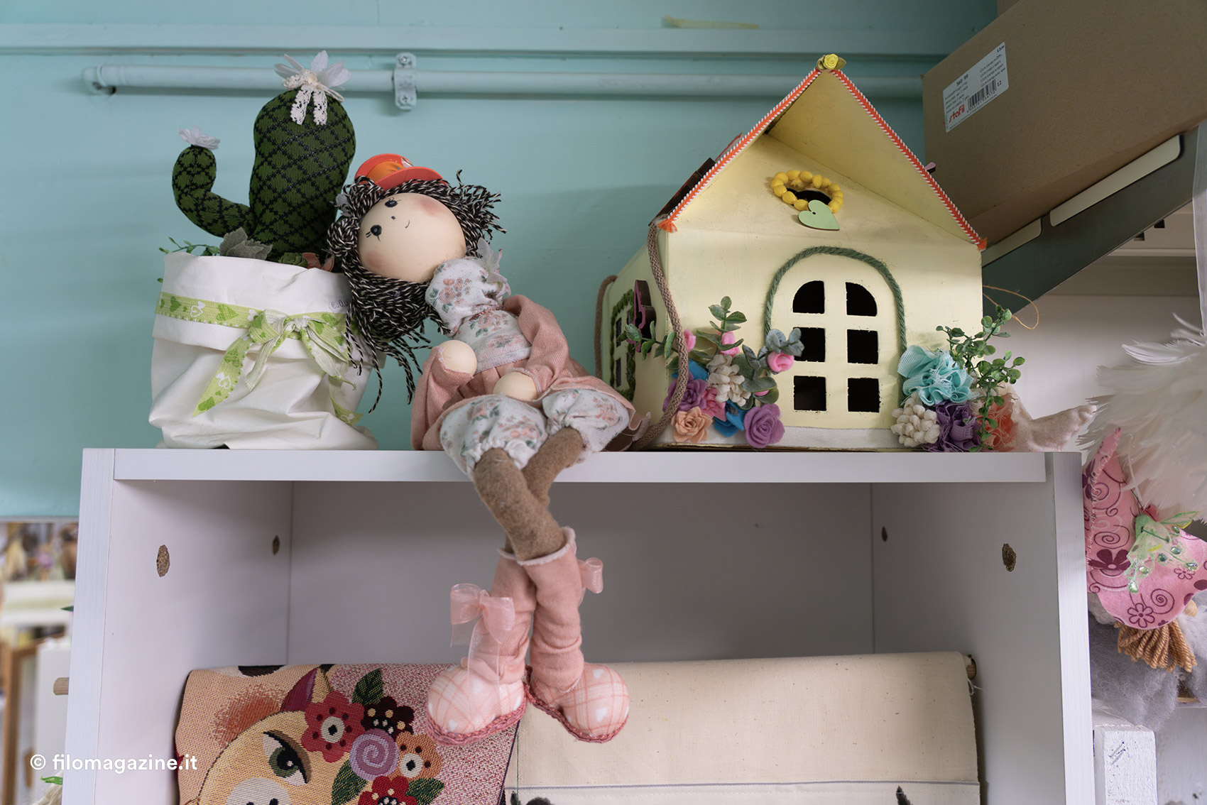 Il suo genio artistico è multiforme: all’interno del negozio compaiono creazioni di ogni tipo, come ricami, presine per la cucina, strofinacci, runner per rendere colorate e allegre le nostre tavole, bambole molto personalizzate a seconda delle richieste dei clienti, o a seconda della particolare ricorrenza da celebrare, o ancora a seconda del comando della sua stessa fantasia, elfi e fate.