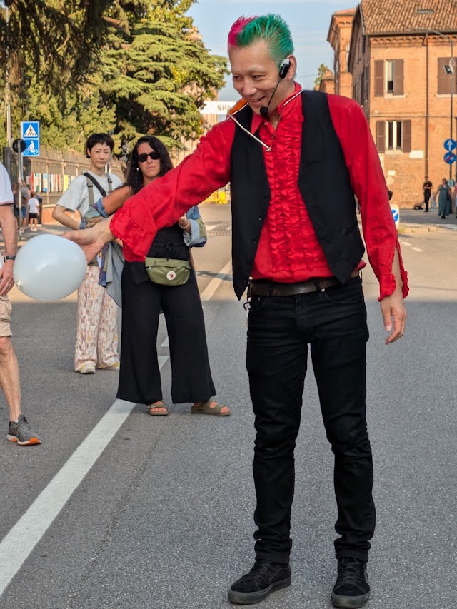 In conclusione, quello degli artisti con cui abbiamo parlato ci sembra un punto di vista laterale al prezzodelbiglietto, argomento centrale di buona parte delle conversazioni cittadine di questi giorni, stia in questi temi. Nel fatto che pur organizzato estremamente bene e all’interno di una splendida via (Ercole Primo d’Este) e di un Parco Massari che ben si presta a questi eventi, il Buskers Festival abbia sofferto soprattutto del difficile nuovo equilibrio tra biglietto d’ingresso, numero di persone presenti e sostenibilità degli artisti. Artisti che possono esserci solo se sono in grado di sostenersi e quindi di guadagnare in quello che è il loro lavoro quotidiano.