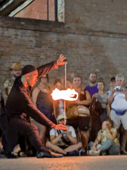 “Recentemente sono stato a Edimburgo, in un festival di strada molto grande e devo dire che apprezzo molto la risposta che ho trovato qui a Ferrara” ci ha invece raccontato Lay Lee. Il suo spettacolo è un delicatissimo affresco di danza all’interno di un enorme cerchio, che termina in una performance con il fuoco di rara eleganza.