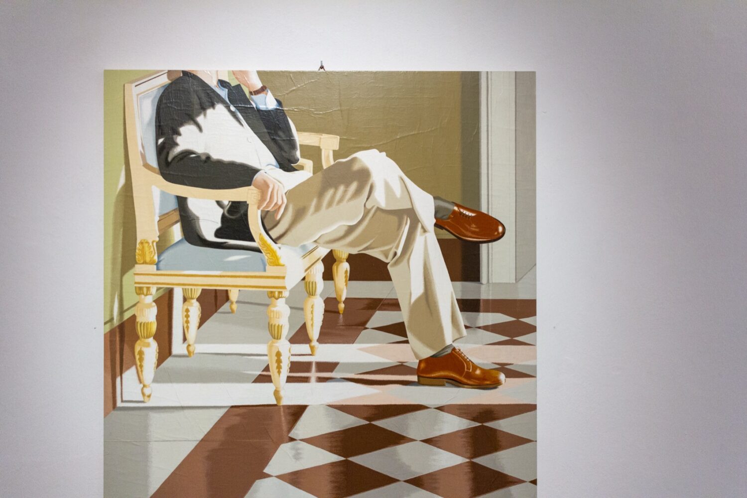 Negli anni Novanta la ricerca iperrealista di Paola tocca il suo culmine con alcune opere dal sapore squisitamente jazz, elegante, contemporaneo, che guardano a New York più che in modo ombelicale alla nostra piccola provincia emiliana. Questa enorme ad esempio è dedicata a suo cognato Franco Farina, pur senza ritrarlo integralmente.