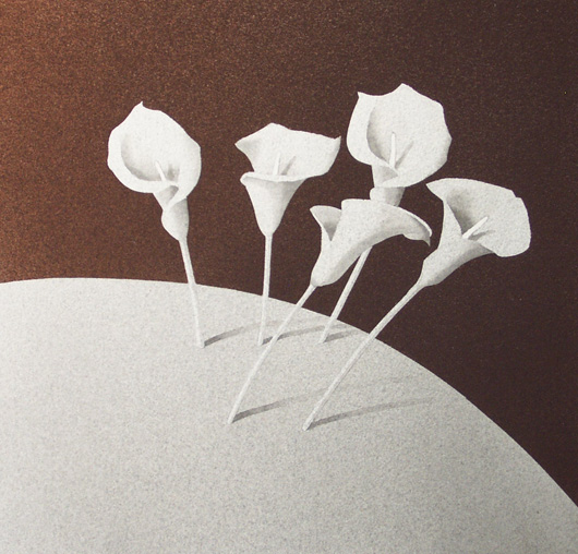 Nel corso degli anni Duemila i soggetti di Paola diventano ricorrenti ed estremamente poetici: uomini in cappotto che volano, cappelli eleganti, fiori raffinati, stelle, ambienti rarefatti e indefiniti, successioni di forme che si fondono e si intrecciano dando vita a spazi e luci che fanno sognare. Un minimalismo che apre alla fantasia di ognuno di noi, una ricerca di purezza e semplicità che commuove e su cui mi sono avventurato nella costruzione di un racconto ispirato proprio da queste opere. Nel 2011 utilizzando alcune opere di Paola in sequenza abbiamo dato alle stampe Interno con cappello, piccola pubblicazione senza pretese, dai tratti noir e misteriosi.