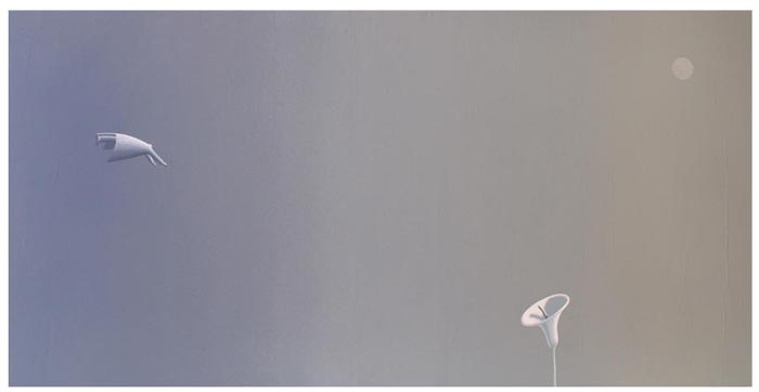 Sembrano acquerelli? No. Sembrano frammenti fotografici dettagliatissimi della quotidianità, scampoli d’ordinario che sfuggono al nostro sguardo distratto, ma che, sotto un’osservazione attenta, si rivelano carichi di poesia e fascino. Nelle opere di Paola affiora un tratto malinconico e al tempo stesso ironico, profondamente magrittiano, dove gli oggetti, immersi in sfondi uniformi o macchiati da segni che si dissolvono nell’infinito, si spogliano di ogni significato consueto. Diventano silenziose presenze, forme inerti del quotidiano, rassicuranti nella loro placida immobilità, come memorie sospese nel tempo.
