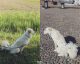 Al centro siamo in zona parco urbano, l’annusata è profonda, con il muso affondato nel terreno, mentre analizza con curiosità la fonte di odore senza subirne le informazioni e anzi, risponde con una bella strusciata di schiena (foto in basso). Al contrario, nella foto a destra siamo in città e annusa con una postura ritirata, una zampa indietro e uno sguardo preoccupato… la marcatura che ha trovato su quel sasso doveva essere poco positiva come il suo assetto emotivo.