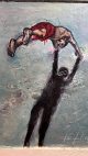 Prendiamo il simbolo di questa esibizione: il Sudarium Estensis un telo, una traccia che emerge dalla Darsena, forse provene dal Po, risale dall’acqua per lasciare un messaggio. Un telo che è come una sindone, su cui emerge la figura di un palombaro, con lo scafandro consumato dall’acqua, deteriorato da anni e anni di attesa sommerso. È finzione, certo: il sudario è immaginato come un telo appartenente a Teseo, il valoroso eroe greco.