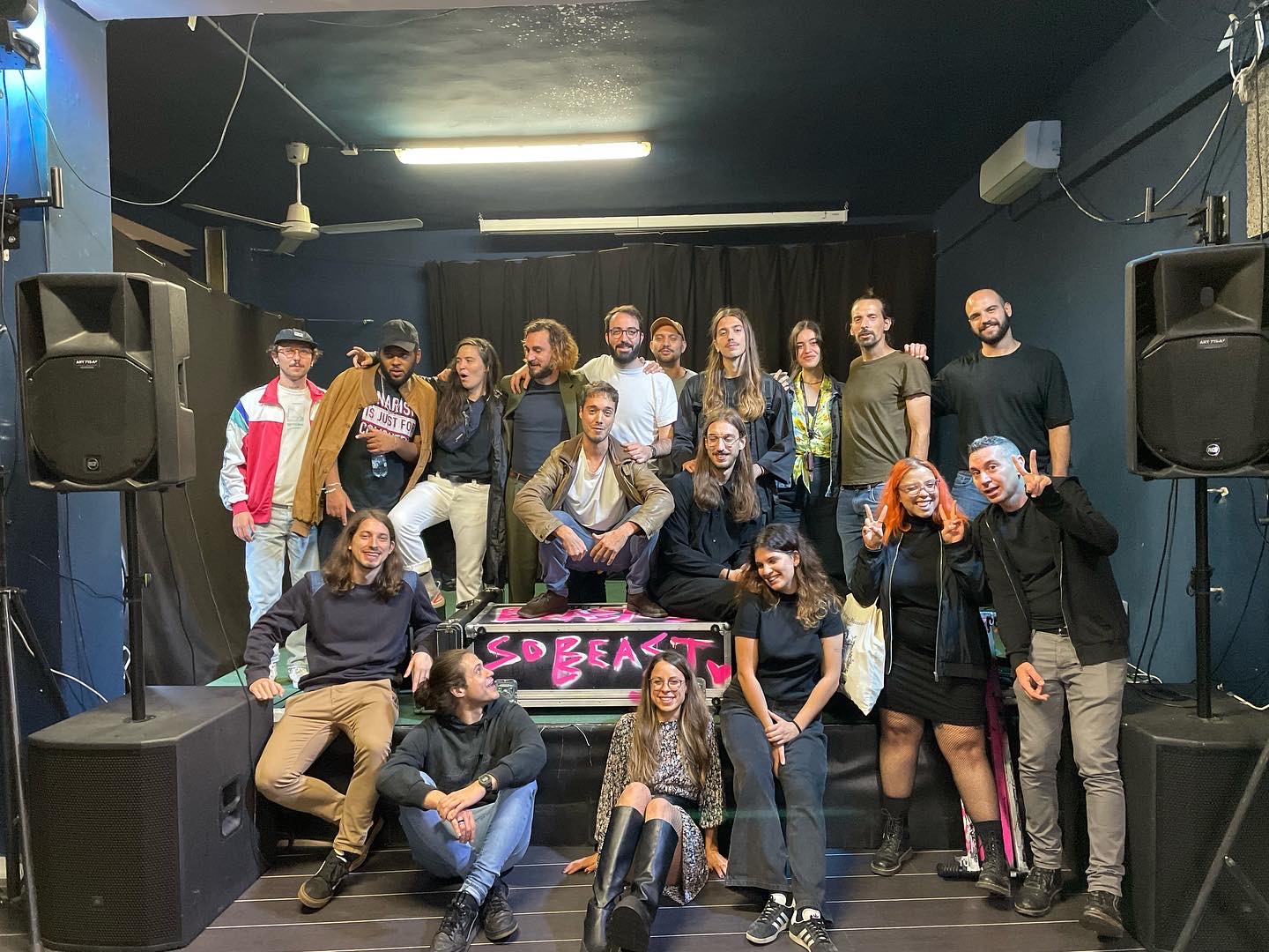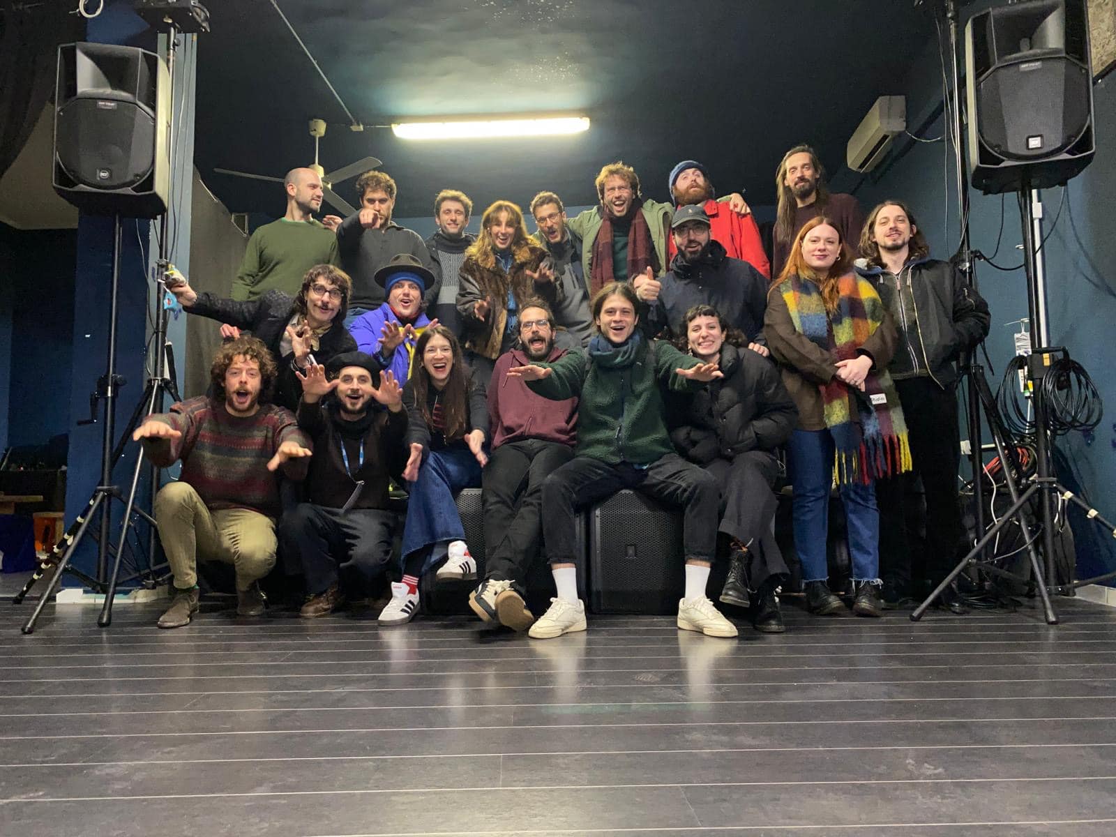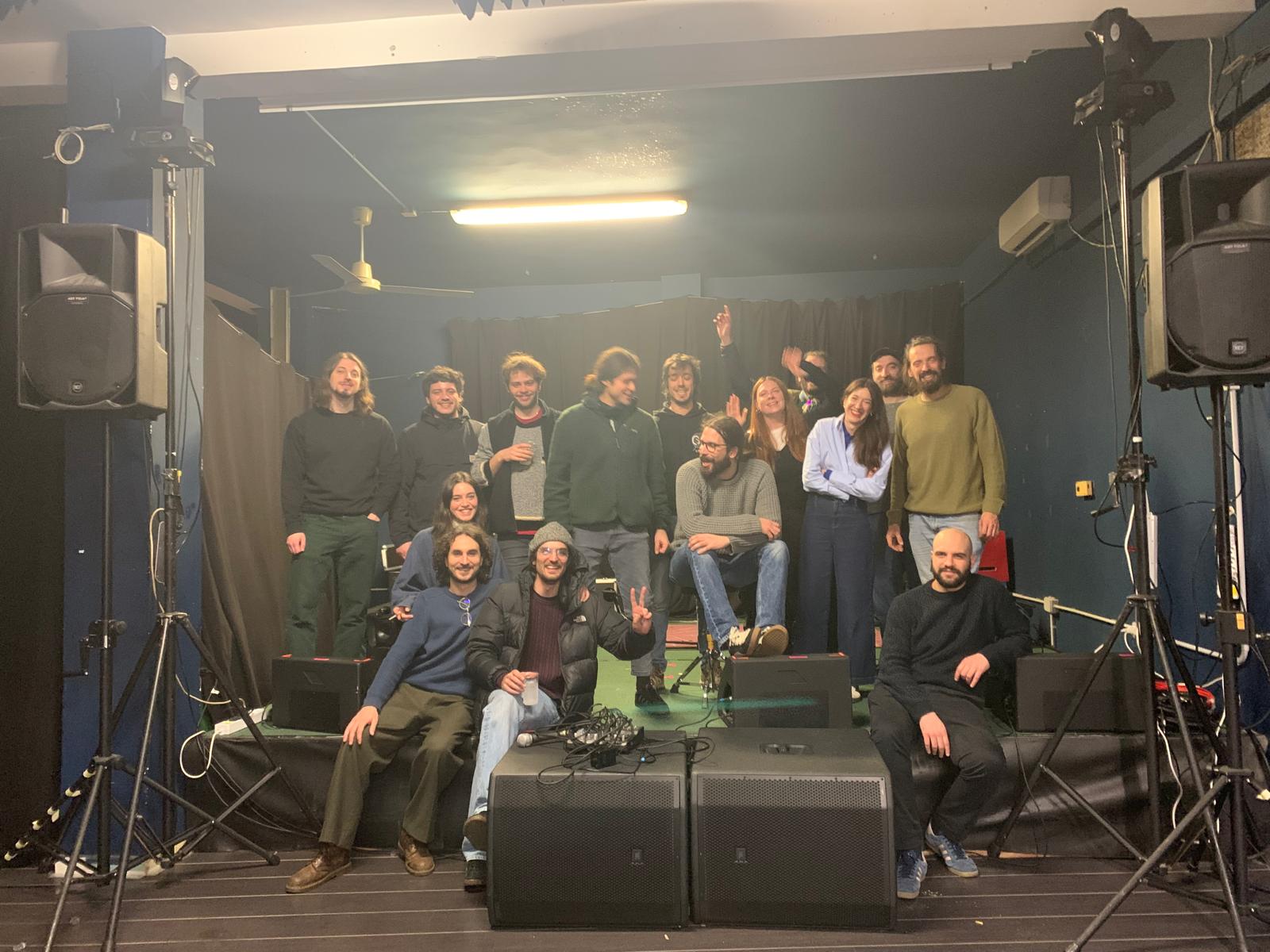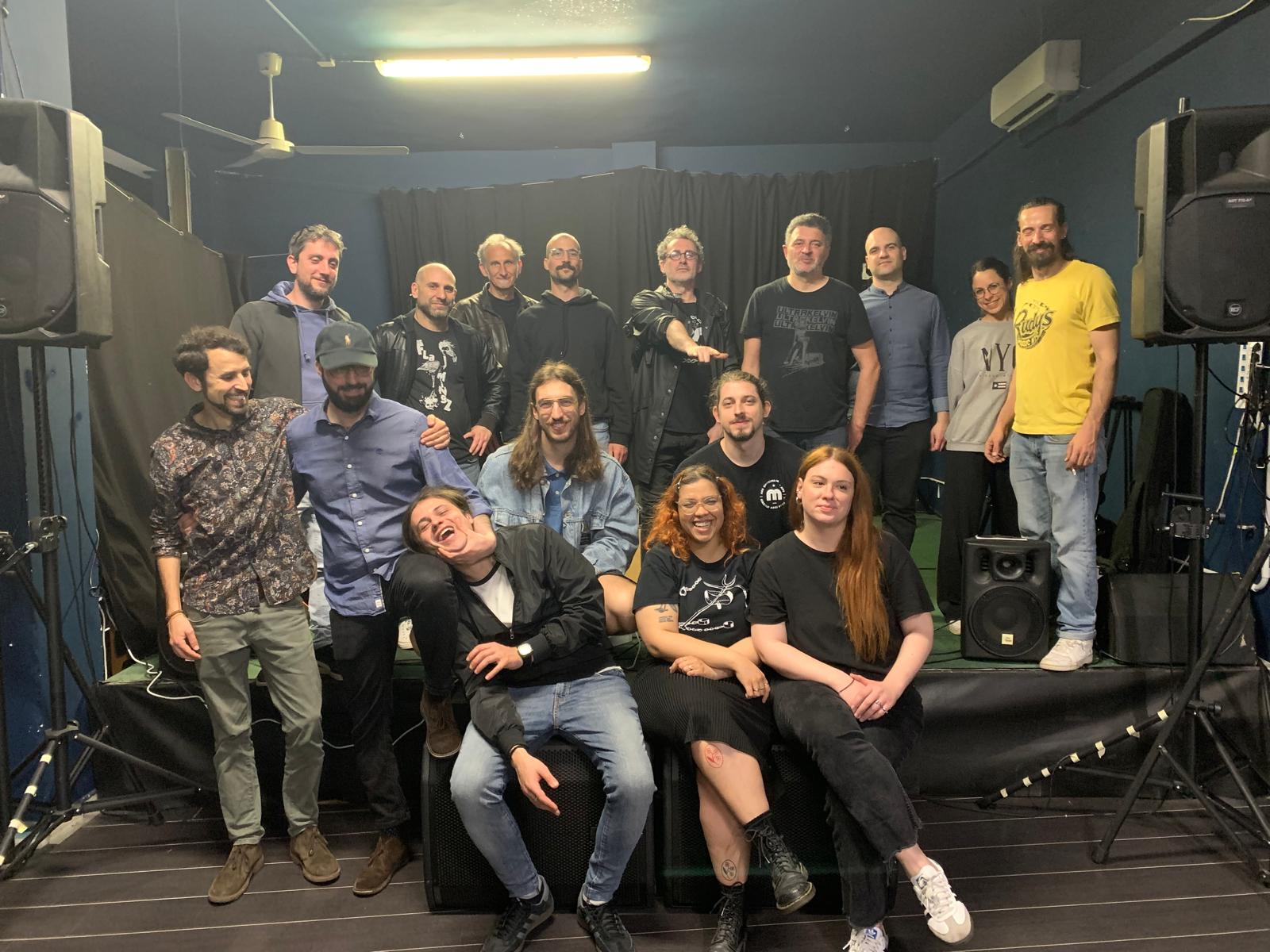 Tra una pagina e l’altra, c’è una fotografia che ritorna, come un rito: la foto ricordo di fine live. I volti provati, a volte sudati, spettinati, stanchi. Ma divertiti, pieni di gioia, orgogliosi, artisti e staff, insieme. Otto anni di volti diversi, di musicisti affermati e band emergenti, di sconosciuti diventati familiari. Un archivio silenzioso di presenze che racconta meglio di qualsiasi manifesto cosa sia Officina. Un piccolo ecosistema fragile, fatto di culture diverse, di equilibri delicati, di un vicinato paziente anche quando la musica non era certo delle più rilassanti. Un luogo aperto a tutti, amato da alcuni, curato da pochi (ma buoni), sostenuto quasi esclusivamente dalla dedizione di chi ogni settimana sceglieva di esserci.