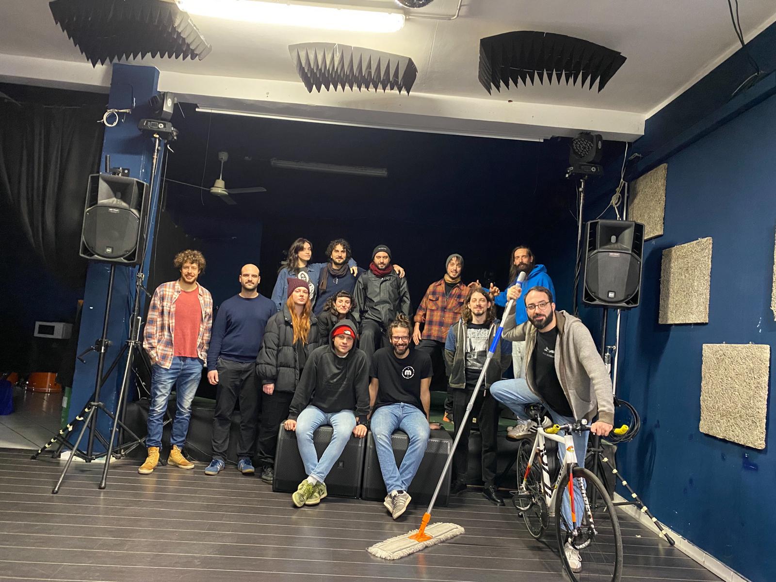 Nel frattempo, le porte non sono mai cambiate. Ancora oggi qualcuno si ferma davanti chiedendo: “Ma è questa l’entrata?”, e di sicuro qualcun altro qualche volta avrà deciso di passare oltre proprio perché pensava fosse impossibile che lì dentro accadesse quello che aveva letto o sentito. Eppure, col tempo, è successo qualcosa di più forte di qualsiasi insegna: le persone hanno iniziato a chiamare quella sala Officina Meca anche senza che fosse scritto da nessuna parte. Il nome, o meglio, la rappresentazione e ciò che veramente Officina è e rappresenta, ha superato l’ingresso, ha superato quelle porte che tanto facevano schifo: “Noi abbiamo sempre avuto un rapporto di amore e odio. Anzi no, odio è troppo. Il sabato sera, ogni sabato sera, smontavamo tutta la nostra attrezzatura e andavamo a letto alle 4. Non è mai stata la nostra sala, è ed è sempre stata polivalente, ma fin da subito abbiamo cercato di farla nostra e noi ci riconosciamo lì: è la nostra casa perché siamo nati lì, ma Officina siamo noi e tutti quelli che l’hanno vissuta e continuano a farlo”. Poi, come accade ai luoghi che sembrano aver trovato un equilibrio, qualcosa ha interrotto la traiettoria.
