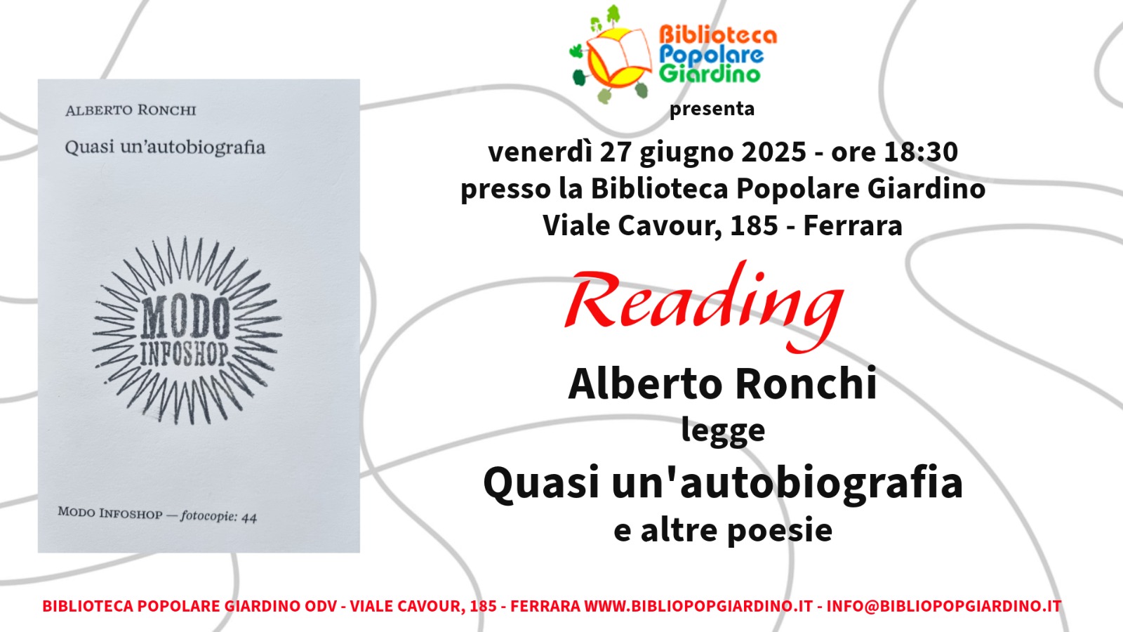 Annullato Presentazione alla Biblioteca Popolare Giardino