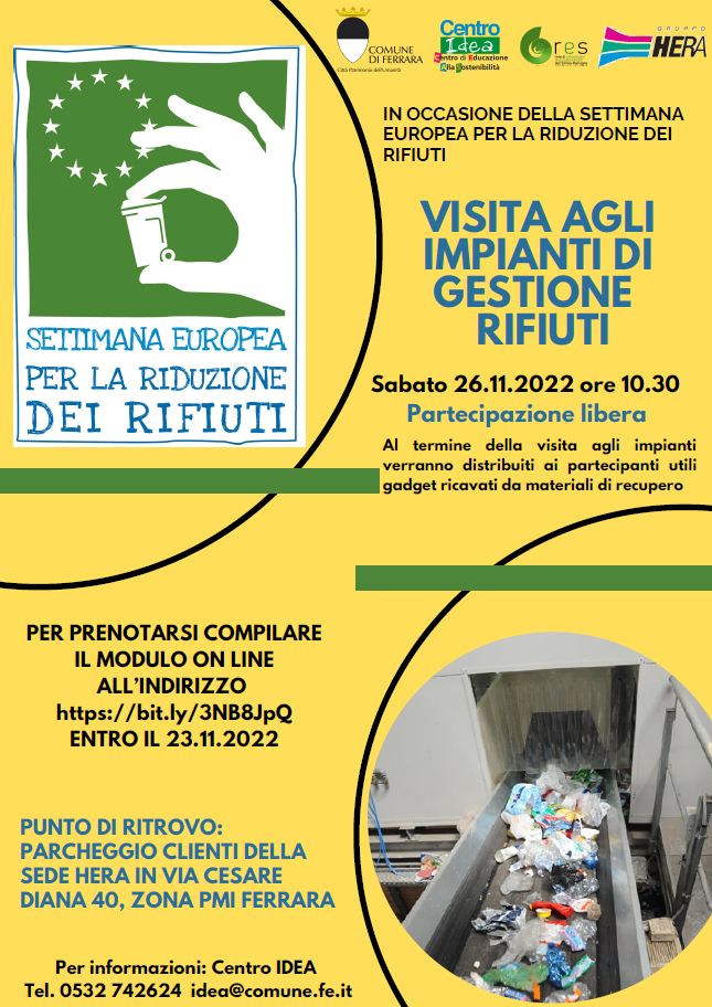 In occasione della Settimana Europea per la Riduzione dei Rifiuti (SERR), il Comune di Ferrara con il suo Centro di Educazione alla Sostenibilità IDEA, in collaborazione con HERA, organizza una visita guidata agli impianti di HERAmbiente.