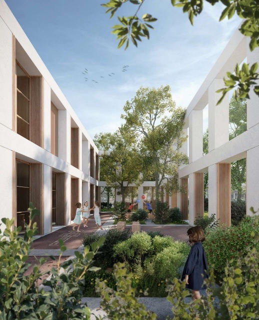 L’edificio che verrà ospiterà così nove classi e un auditorium aperto alla cittadinanza. Piena – dice la relazione del progetto – sarà la simbiosi tra esterno e interno: la facciata regolare sarà infatti aperta sul parco, tramite un ‘ritmo costante’ di aperture, opportunamente schermate a seconda dell’esposizione solare. Corti verdi scoperte si alterneranno ad aule chiuse, con funzione di aree verdi interne all’edificio. Ogni aula sarà dotata di un ambito di pertinenza esterno per la didattica, tra corti, logge, aule didattiche all’aperto – schermate dalla diretta luce dei raggi solari. Le connessioni tra le diverse porzioni del palazzo sono pensate come piccole piazze da vivere, per la socialità e anche ad uso di iniziative.