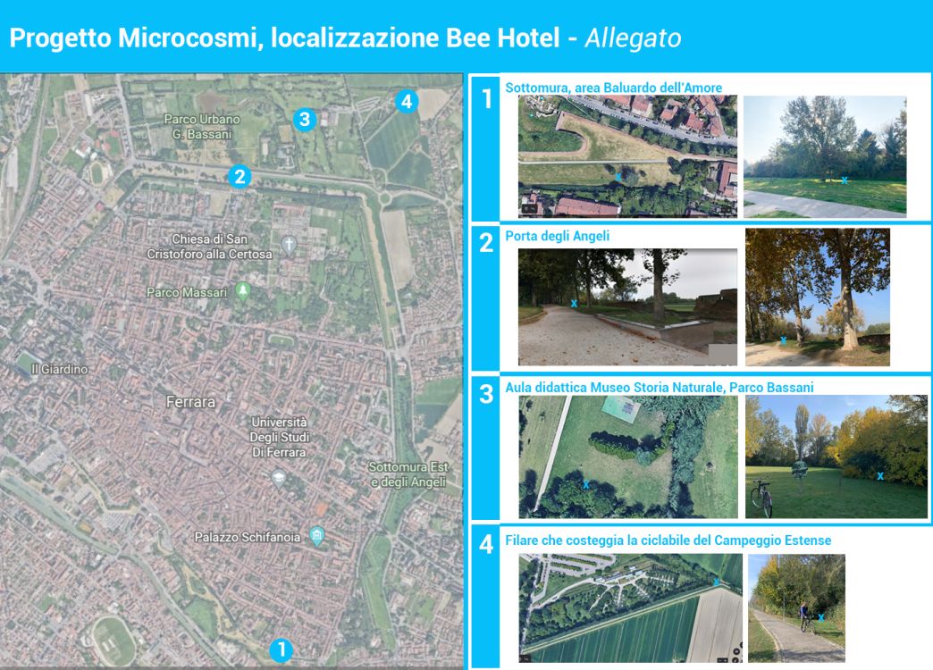 L’installazione di bee hotel è una delle attività previste dal progetto Microcosmi: Agenda 2030, Obiettivo Biodiversità – ideato dal Centro IDEA nell’ambito dell’iniziativa regionale “Educare all’agenda 2030” e dal Museo Civico di Storia Naturale con la collaborazione dell’Ufficio Verde Pubblico, del CSV Terre Estensi e la manifestazione d’interesse da parte del Dipartimento di Salute Mentale dell’ Azienda USL di Ferrara – che ha visto la realizzazione di due incontri pubblici per la scoperta di uno degli obiettivi più importanti dell’Agenda 2030, ovvero il Goal 15 – La Vita sulla Terra.