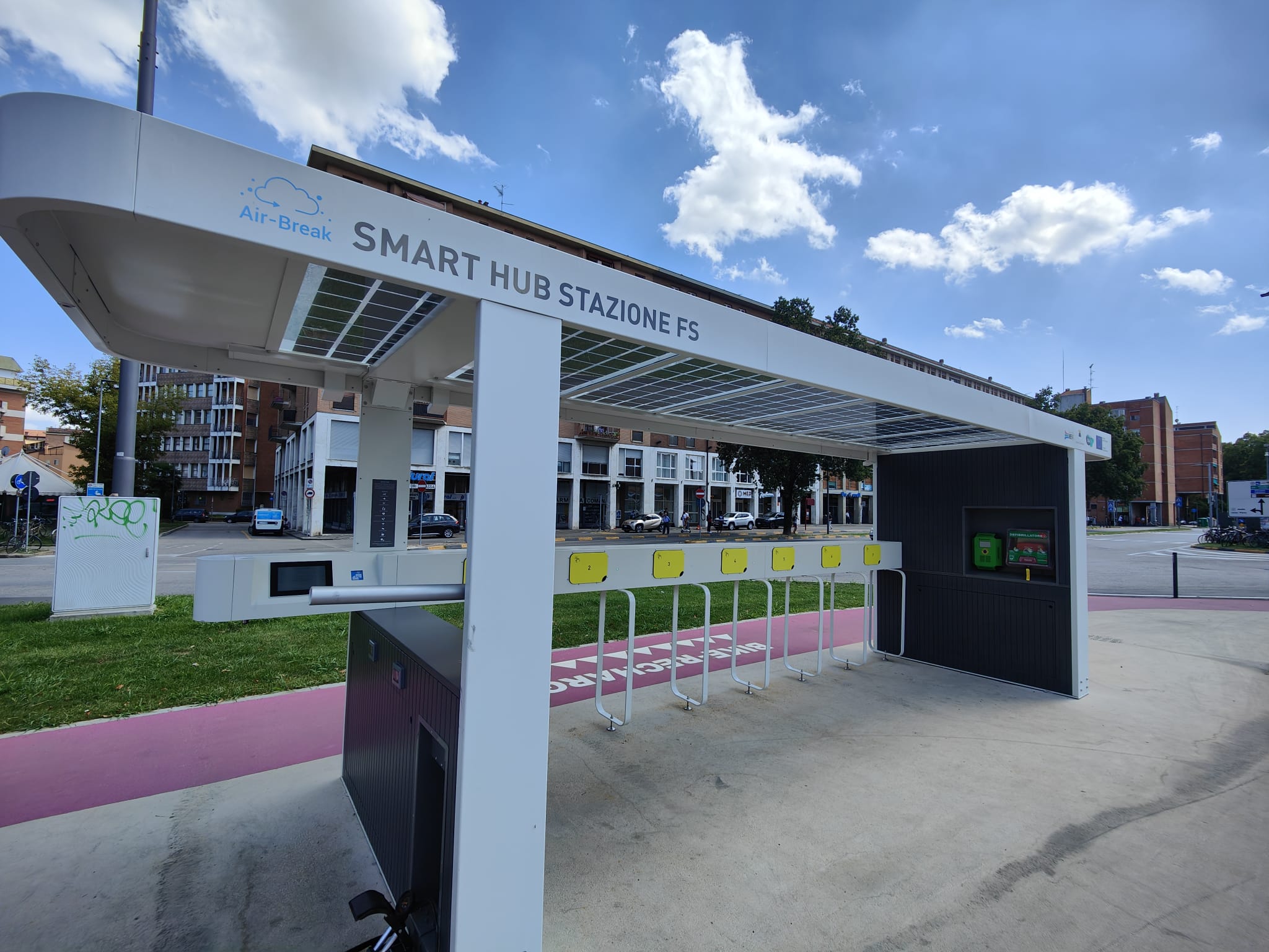 Nell’area sono stati attualmente completati i percorsi ciclopedonali, è stata installata una stazione di ricarica per le biciclette elettriche e riservata un’area per il noleggio self-service delle biciclette e dei monopattini elettrici.