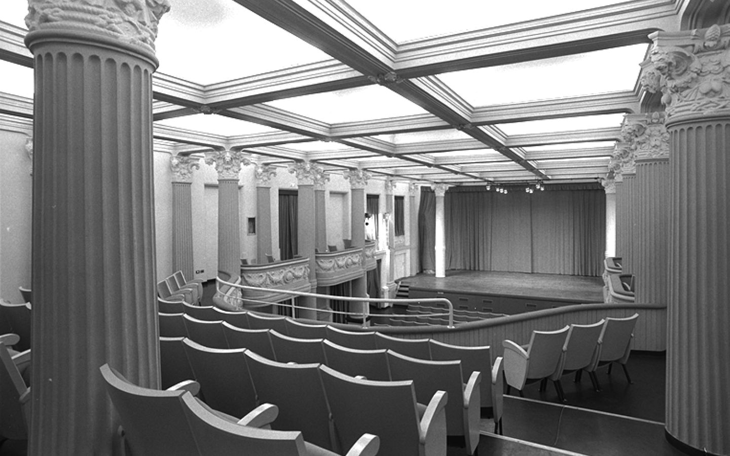 La sala estense è passata nei secoli da ex cappella di Corte (edificata tra il 1476 e il 1480 dal duca Ercole I d’Este) a sede prestigiosa di convegni, conferenze, iniziative culturali e spettacoli. Qui Ercole I d’Este ascoltava la messa nelle note dei suoi cantori, accompagnati da un bellissimo organo, qui nel Cinquecento erano esposte le salme degli Estensi prima della sepoltura. Con la devoluzione di Ferrara allo stato pontificio (1598) la cappella fu concessa alla Confraternita dello Spirito Santo, a cui rimase fino al 1616, per poi diventare teatro pubblico. Nel 1692 lo storico fabbricato fu acquistato dal Comune e restituito al culto dall’anno successivo, intitolandolo a San Maurelio, poi chiuso nel 1796 a seguito dell’occupazione francese. Riaperto alle funzioni religiose nel 1802, fu chiuso definitivamente al culto nel 1893 e adibito a magazzino fino al 1915. Quell’anno il Comune affidò l’attuale sala estense a un imprenditore, nell’ambito del progetto di trasformazione dell’ingegner Sesto Boari che le diede in gran parte l’aspetto attuale. La nuova sala cinematografica fu inaugurata ufficialmente la sera del 17 febbraio 1917. Altri lavori furono eseguiti a partire dagli anni ‘60 e nei decenni successivi, all’esterno e all’interno.