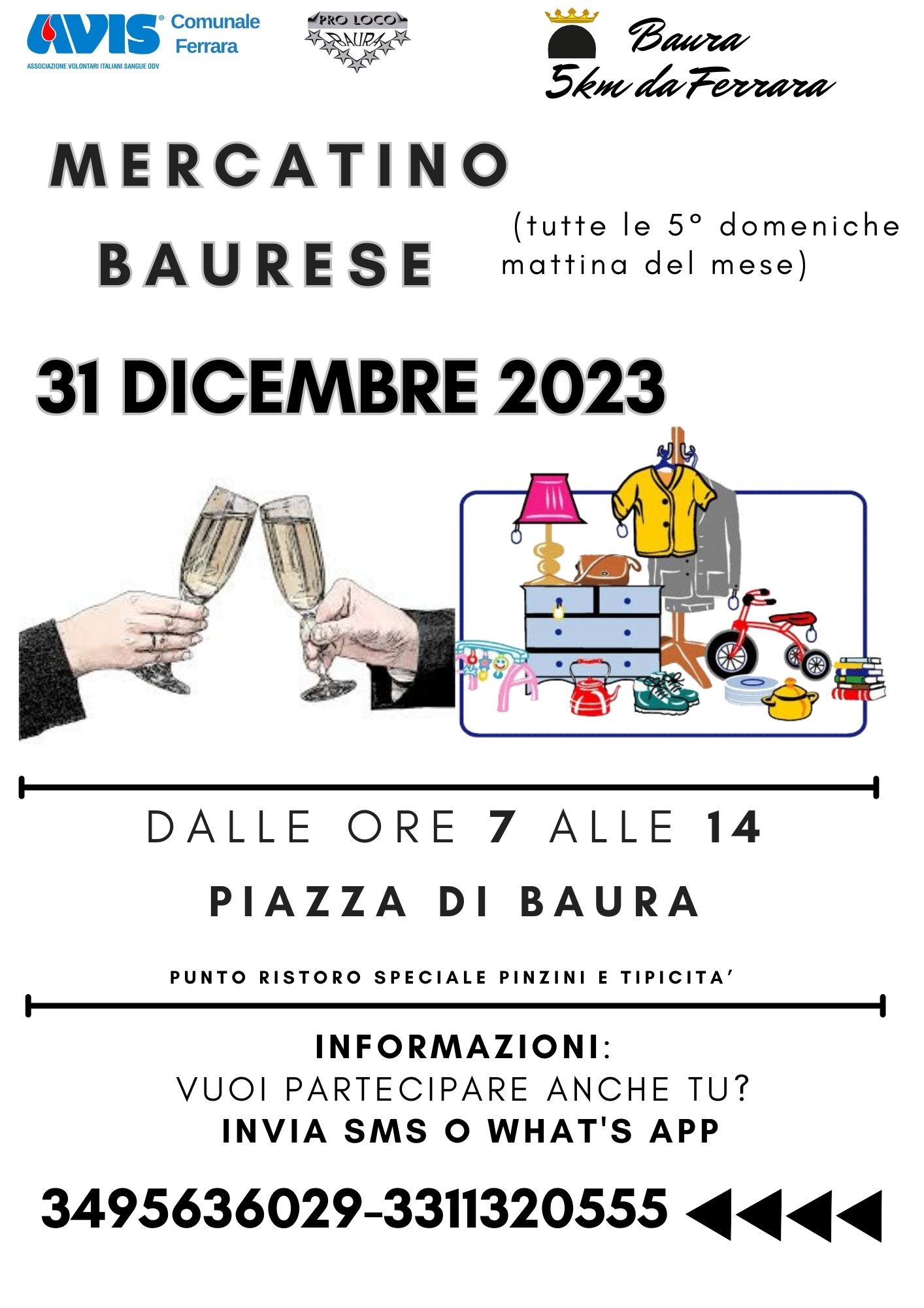 Baura Baura, Ferrara, ItaliaEdizione invernale del mercatino della 5° domenica del mese a Baura (Fe) Domenica 31 dicembre 2023 Piazza di Baura…