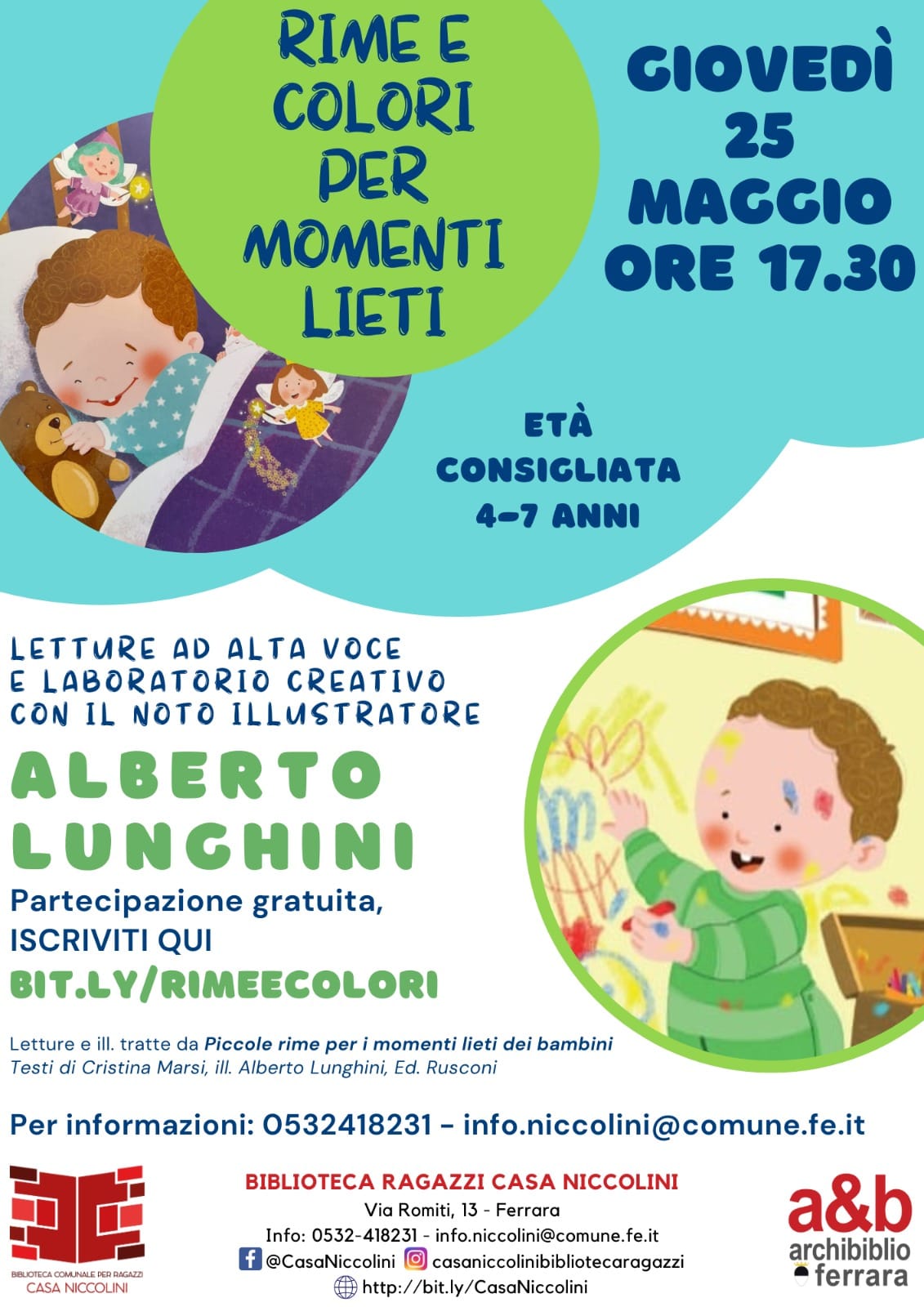 Biblioteca per ragazzi Casa Niccolini via Romiti, 13, Ferrara, Ferrara, ItaliaLetture ad alta voce e laboratorio creativo per bambini dai 4 anni ai 7 anni. Alberto Lunghini e…