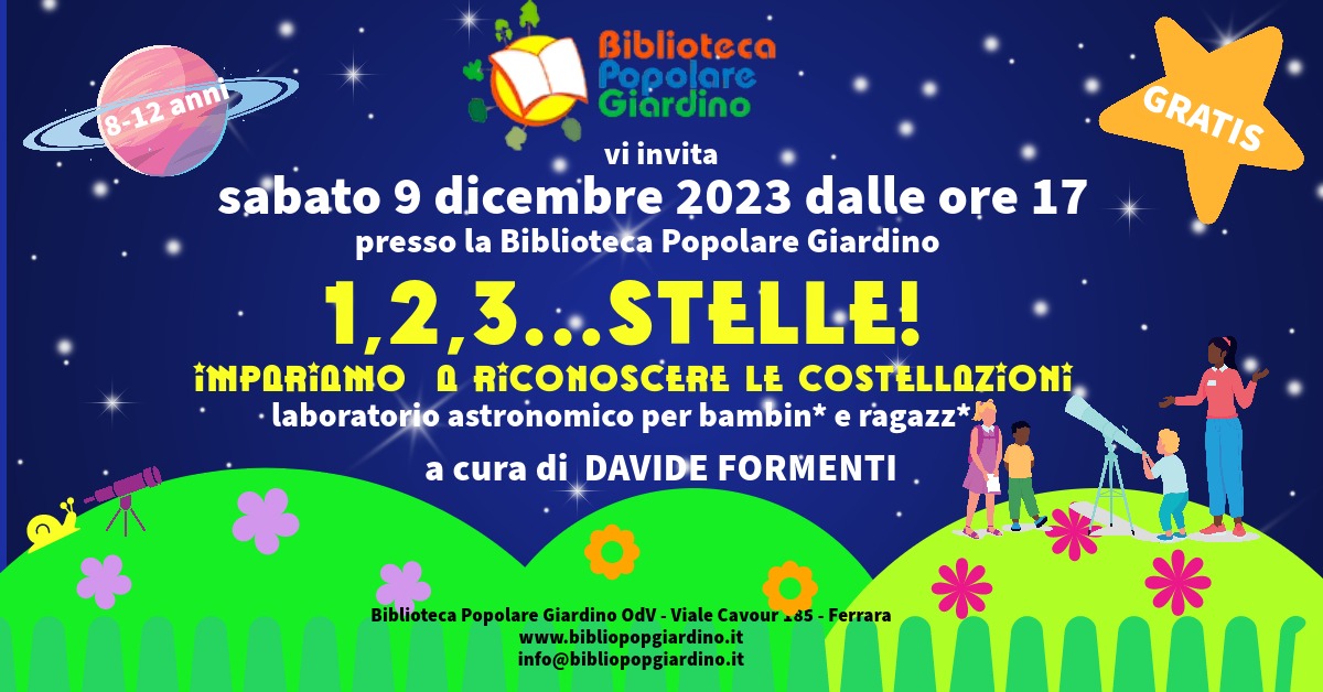 Biblioteca Popolare Giardino Odv Viale Cavour 189 (base del grattacielo), FerraraLaboratorio astronomico per bambini e ragazzi (8-12 anni) a cura di Davide Formenti www.bibliopopgiardino.it