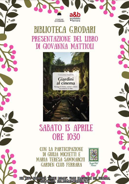 Biblioteca Rodari V.le Krasnodar, 102, Ferrara, Ferrara, Italia"Giardini al cinema. Paesaggi di donne, uomini e natura raccontati in 51 film" Sabato 13 aprile alle ore…