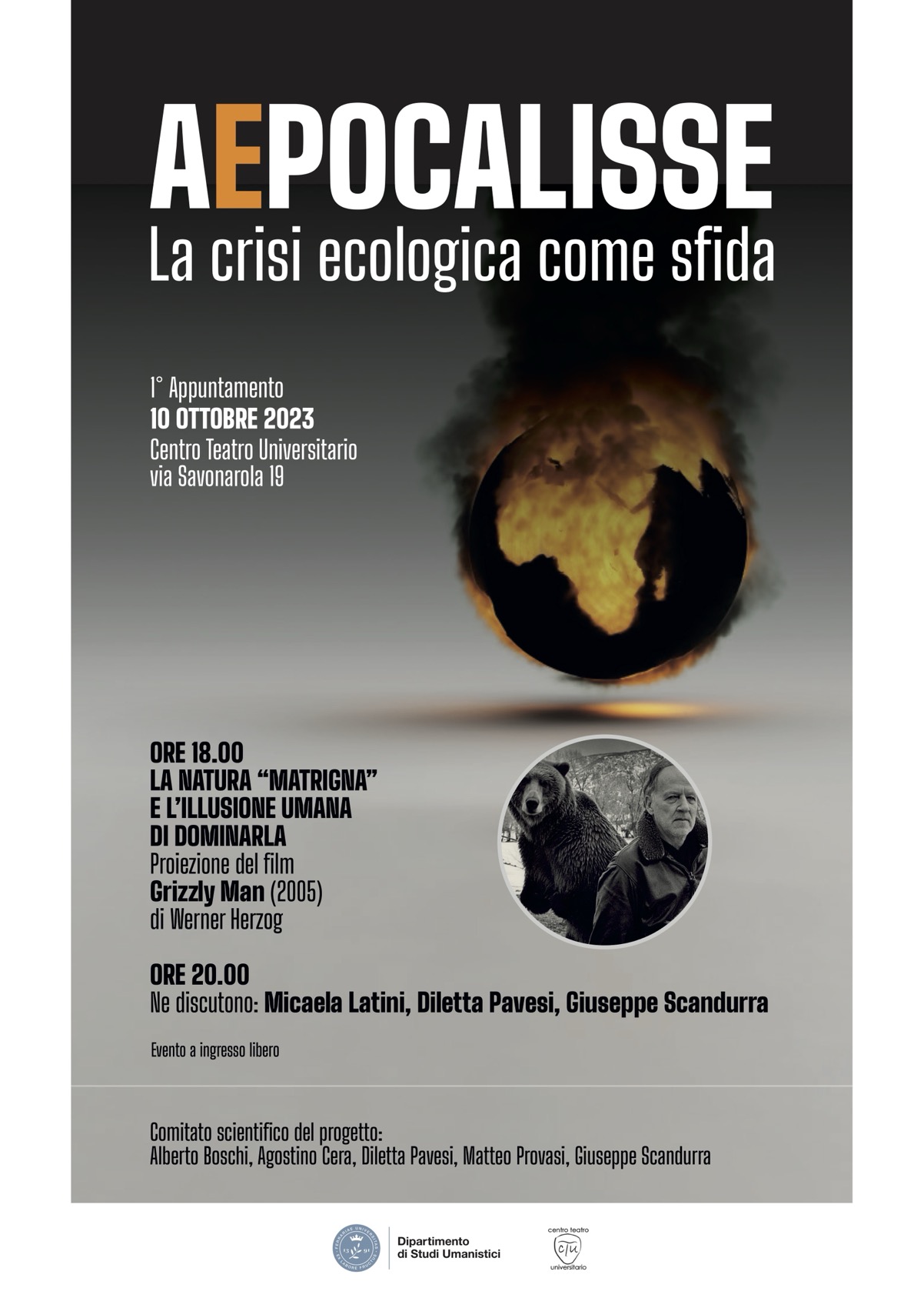 Centro Teatro Universitario di Ferrara Via Savonarola, 19, Ferrara, ItaliaAEPOCALISSE. La crisi ecologica come sfida è il progetto del Dipartimento di Studi Umanistici che si prefigge di raccontare lo sforzo di…
