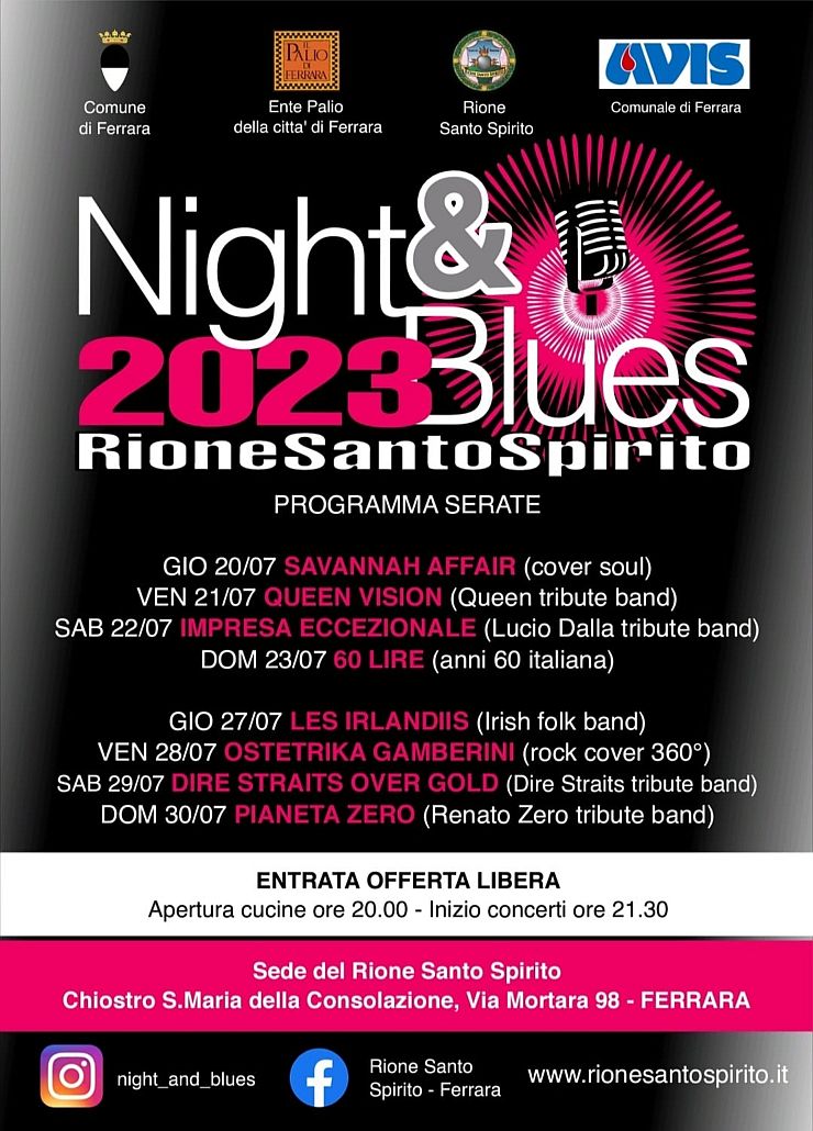 Chiostro Santa Maria della Consolazione Via Mortara 98 FerraraNuova edizione del Night and Blues Chiostro Live 2024, serate magiche piene di musica, dal 18 al 21…