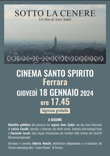 Cinema Santo Spirito Via della Resistenza, 7, FerraraGiovedì 18 gennaio, ore 17:45 Proiezione del docufilm “Sotto la cenere”, Italia 2022, del regista Amir Saleh al…