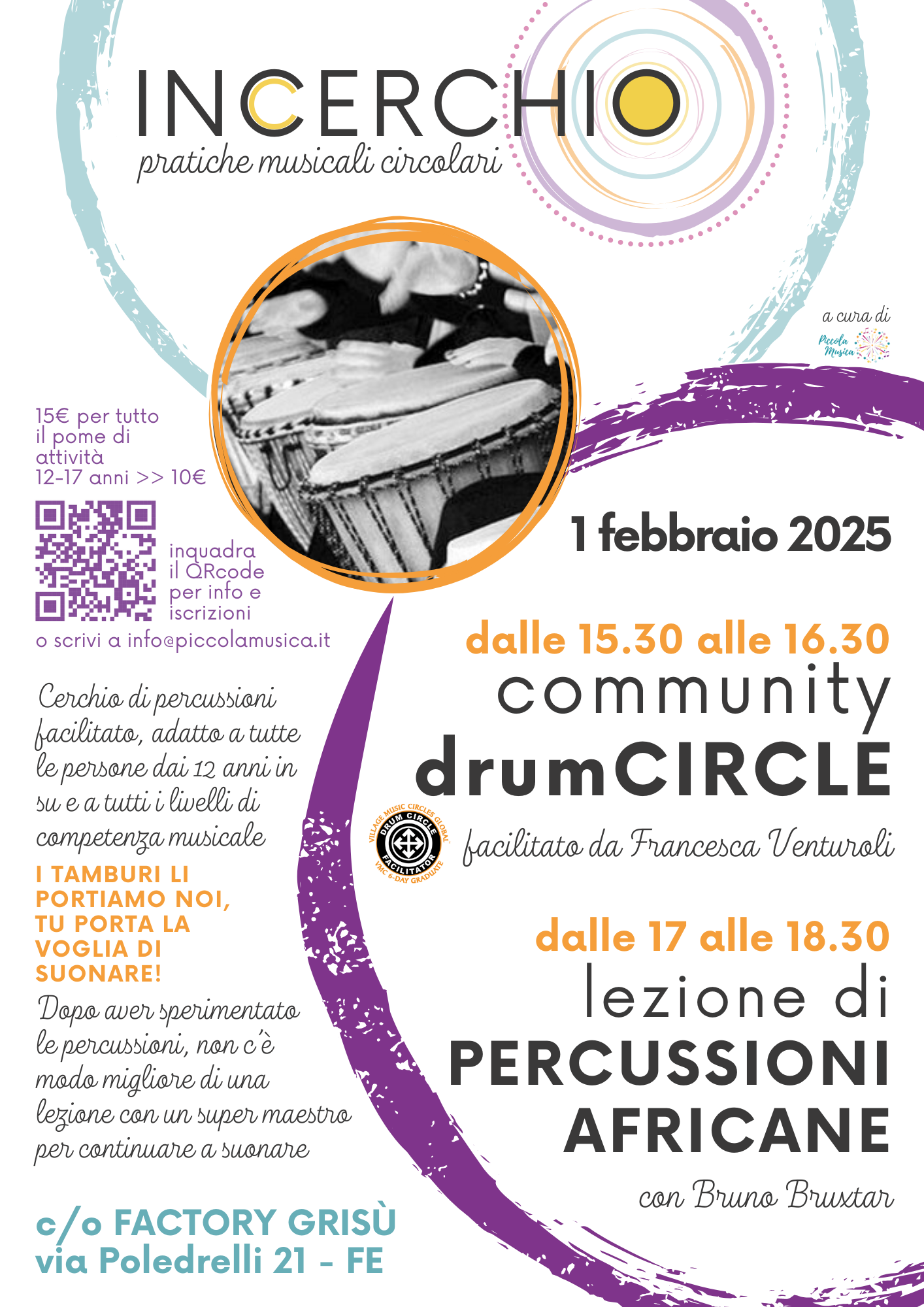 Consorzio Factory Grisù via Poledrelli 21, Ferrara, ItaliaSabato 1 febbraio al Consorzio Factory Grisù sarà un pomeriggio dedicato al ritmo, alle percussioni e alla musica…