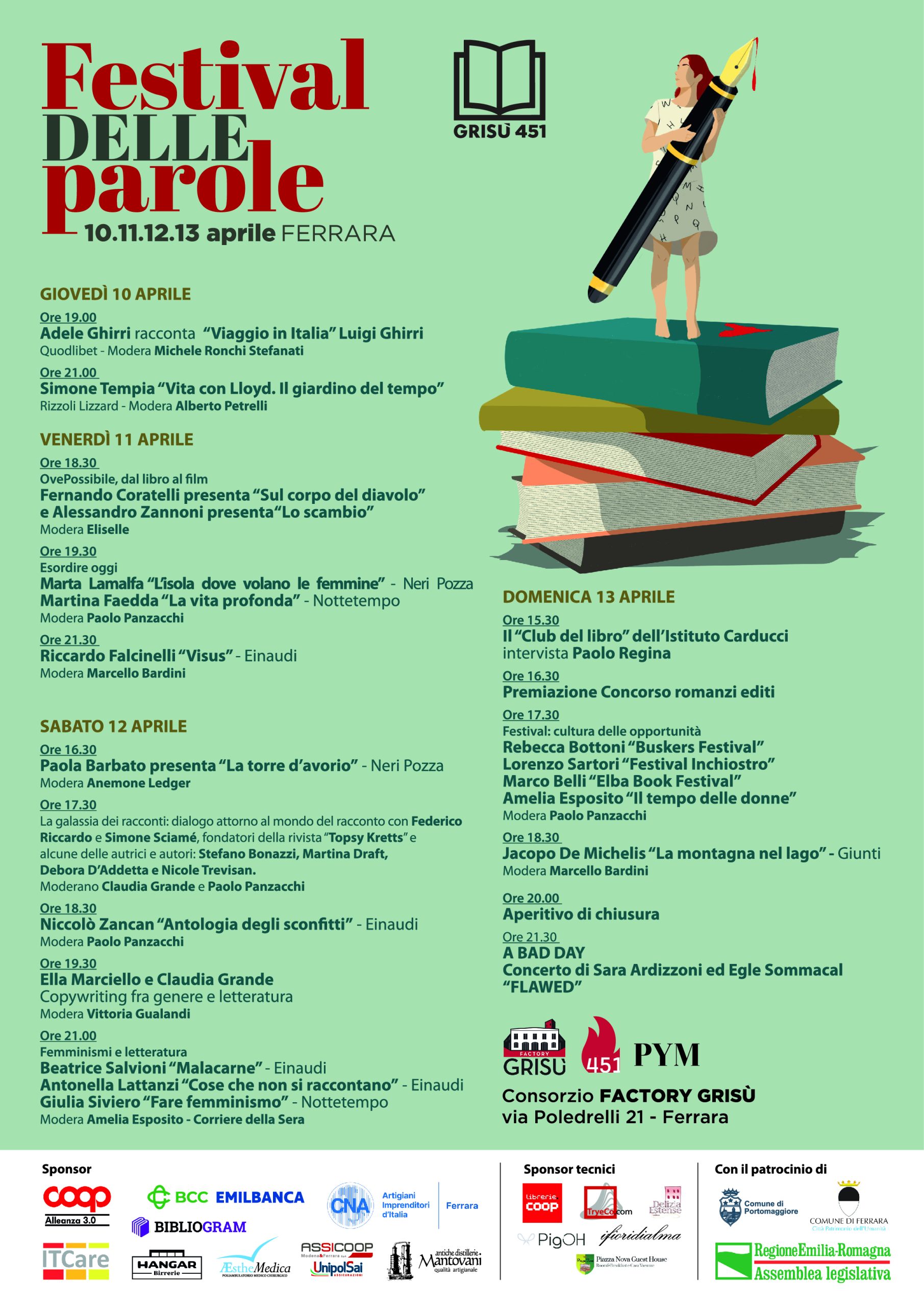 Consorzio Factory Grisù via Poledrelli 21, Ferrara, ItaliaGrisù 451 Festival delle parole si svolgerà dal 10 al 13 Aprile negli spazi di Factory Grisù. Il programma del…