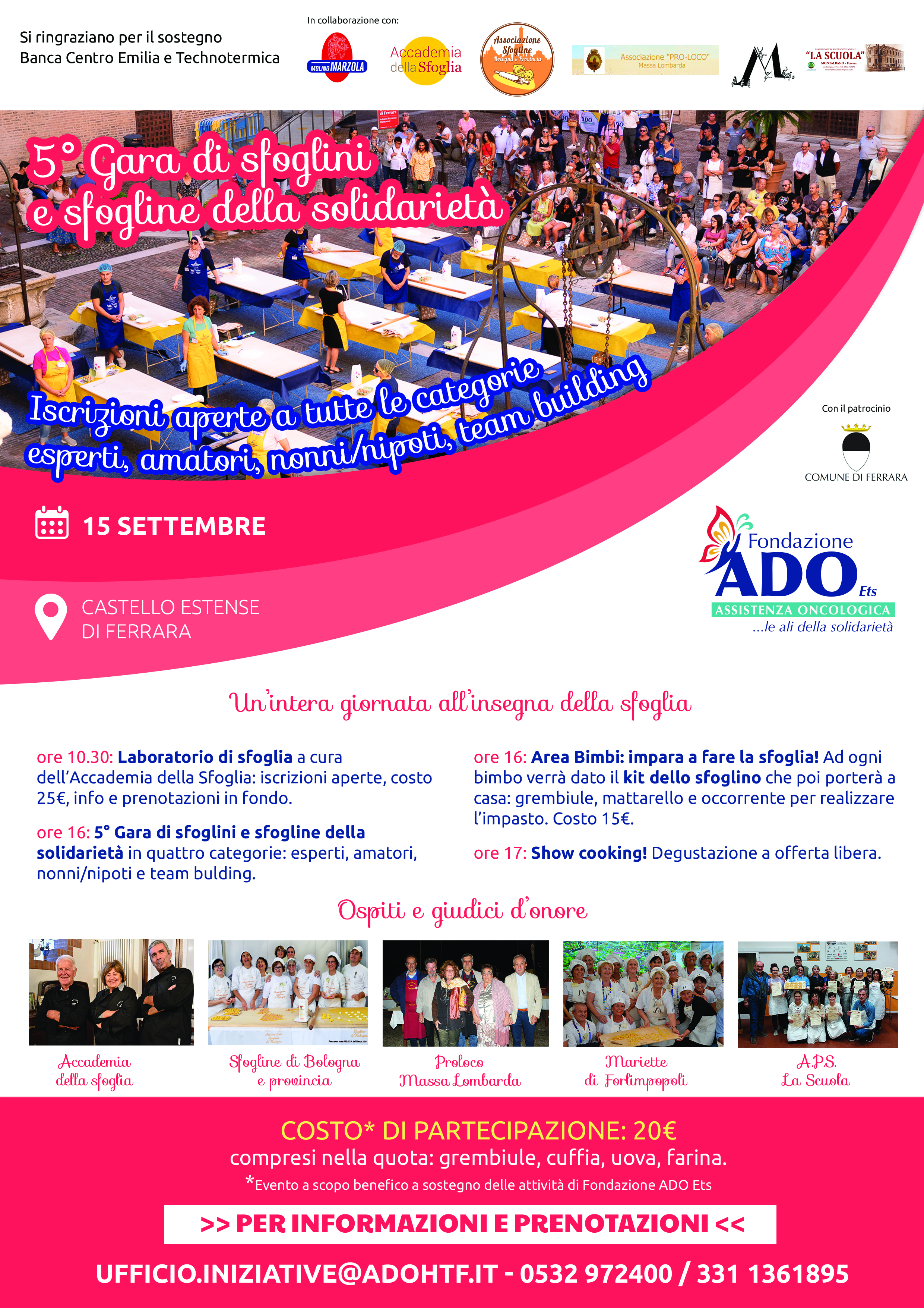 Cortile del Castello, FerraraIl 15 Settembre 2024 la Fondazione ADO organizza la 5° GARA DI SFOGLINI E SFOGLINE DELLA SOLIDARIETA’, con…