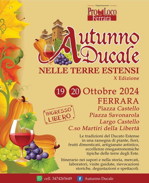 Ferrara - Luoghi diversi Ferrara, Ferrara, ItaliaAutunno Ducale nelle Terre Estensi X edizione Sabato 19 e Domenica 20 ottobre 2024 a Ferrara in Piazza…
