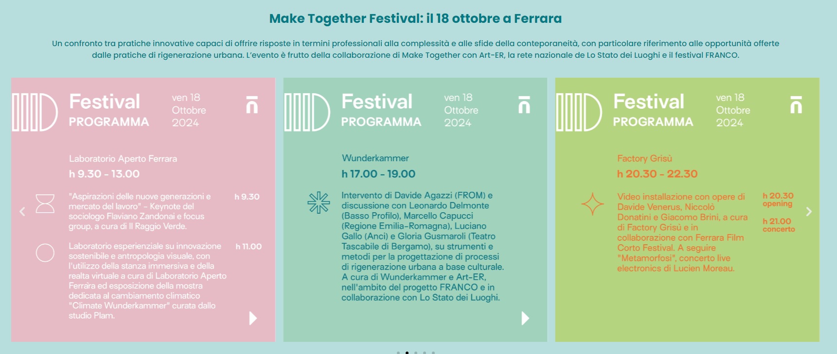 Ferrara - Luoghi diversi Ferrara, Ferrara, ItaliaFestival Make Together: venerdì 18 ottobre talk, performance e laboratori dedicati alle opportunità di lavoro per i giovani…