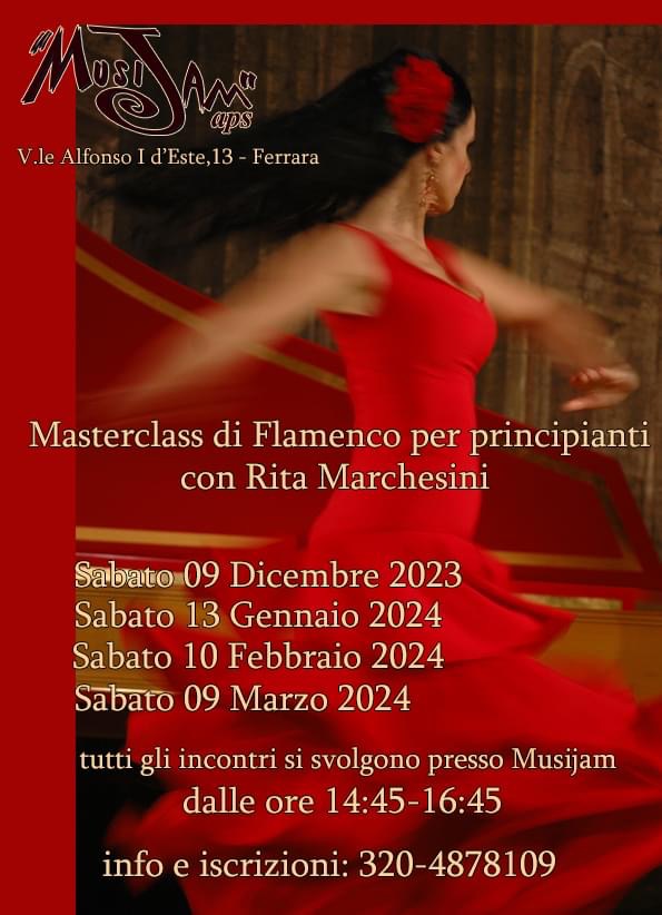 Musijam Associazione Culturale e Scuola di Musica Viale Alfonso I d'Este, 13, FerraraMasterclass di Flamenco da tenere da dicembre presso la sede della Scuola di Musica e Associazione Culturale Musijam…