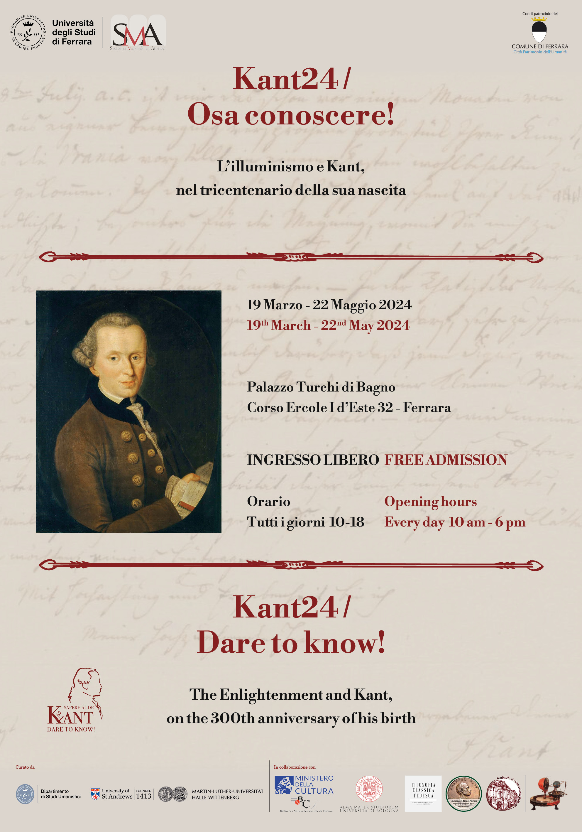 Palazzo Turchi di Bagno - UniFe C.so Ercole I d'Este, 32Kant24/Osa conoscere! L'Illuminismo e Kant nel tricentenario della sua nascita. Dal 19 marzo al 22 maggio 2024, per…