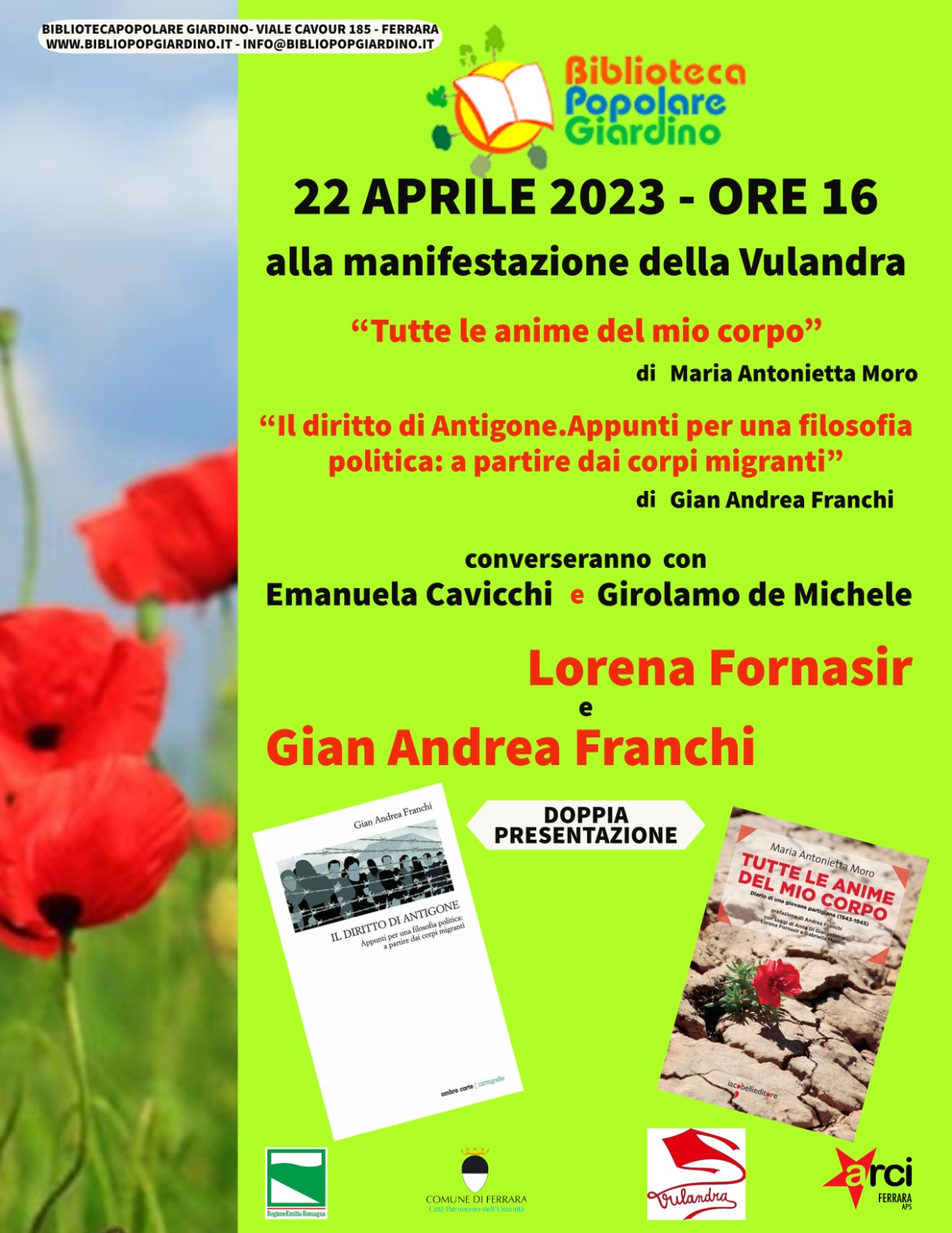 Parco Urbano Bassani Parco Urbano Bassani, Ferrara, ItaliaResistenza ieri e oggi, doppia presentazione di libri presso La Vulandra 2023 “Tutte le anime del mio corpo.…