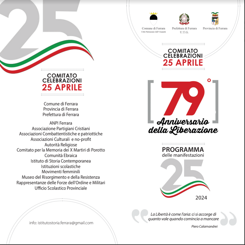 Piazza della Cattedrale - FerraraProgramma delle manifestazioni il 25 aprile 2024 in occasione del 79° anniversario della Liberazione. PROGRAMMA: - Ore 10:00,…
