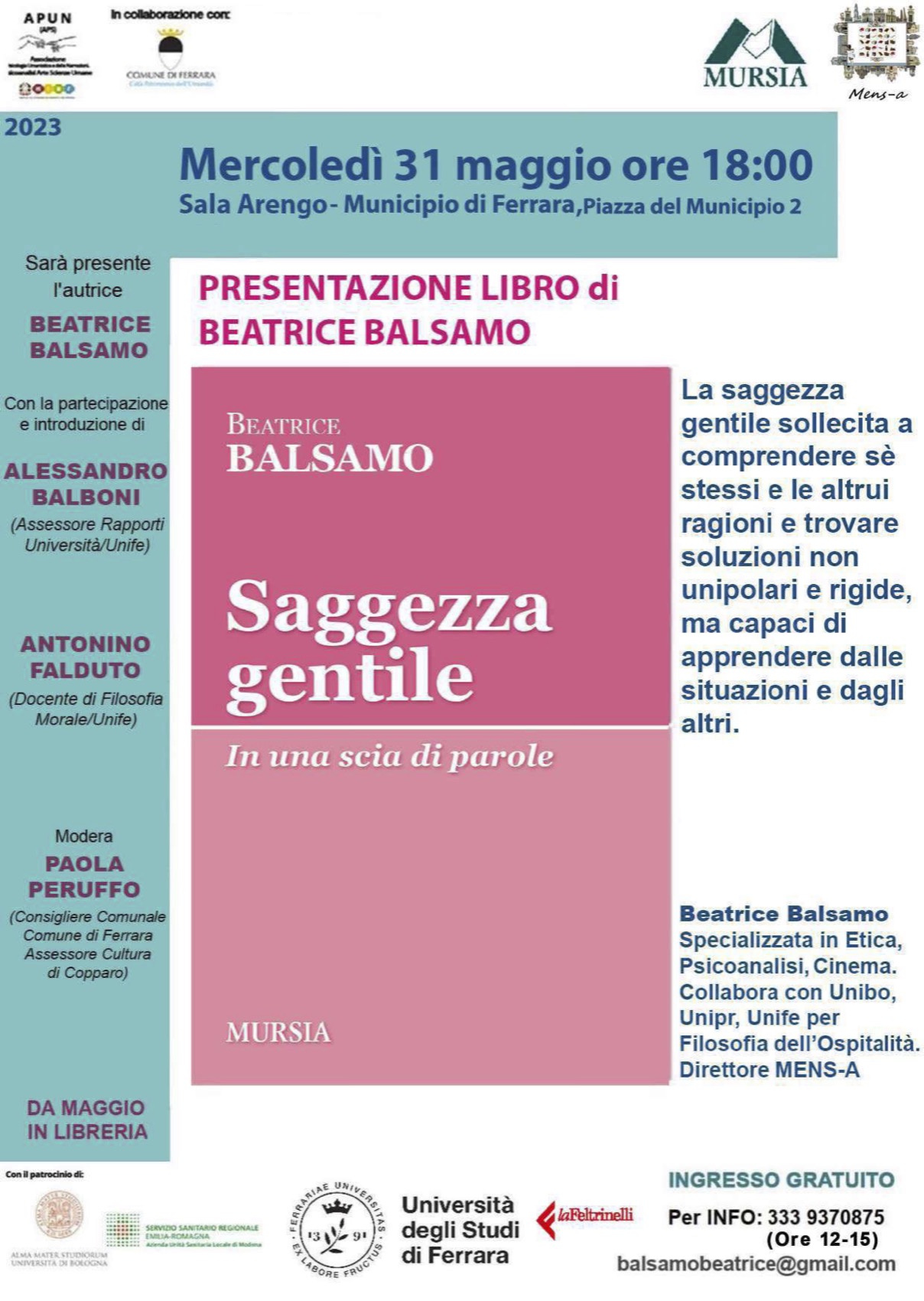 Beatrice Balsamo presenta il libro “Saggezza gentile. In una scia di parole”