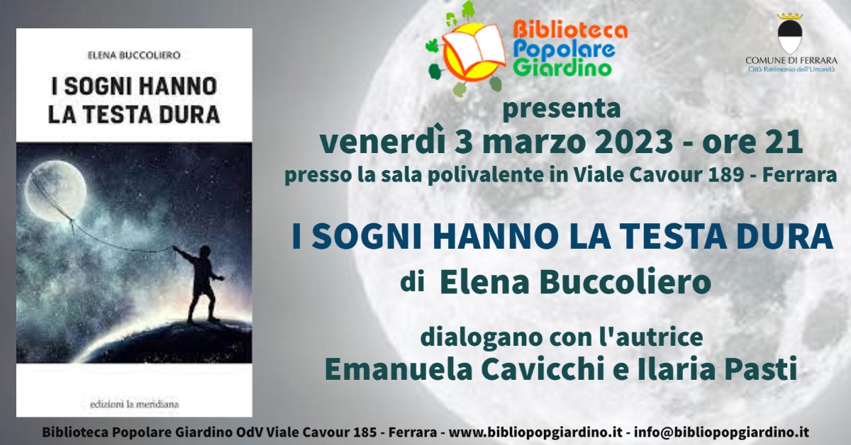 Sala Polivalente Grattacielo, viale Cavour 189 Ferrara, Ferrara, Italiapresentazione del libro "I sogni hanno la testa dura" di e con Elena Buccoliero dialogano con l'autrice Emanuela…