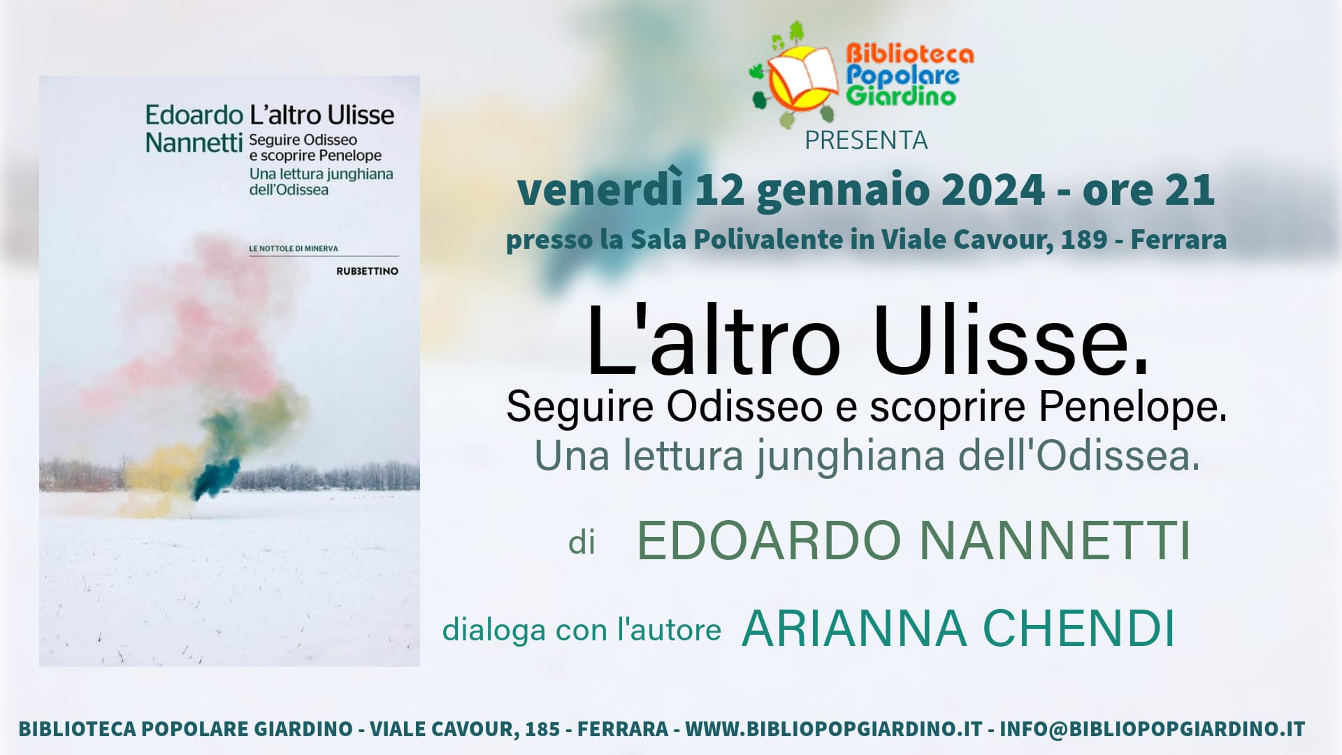 Sala Polivalente Grattacielo, viale Cavour 189 Ferrara, Ferrara, ItaliaPresentazione a cura della Biblioteca Popolare Giardino L’altro Ulisse Seguire Odisseo e scoprire Penelope. Una lettura junghiana dell’Odissea …