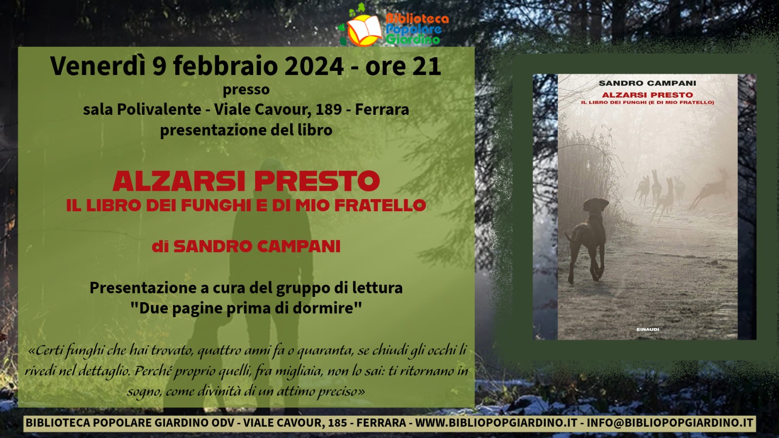 Sala Polivalente Grattacielo, viale Cavour 189 Ferrara, Ferrara, ItaliaLa Biblioteca Popolare Giardino INVITA alla presentazione del libro: Alzarsi presto. Il libro dei funghi (e di mio…